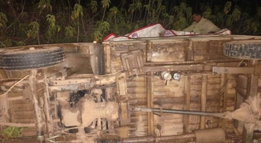 तेज रफ्तार पिकअप पलटी, 20 लोग थे सवार, दो की हालत गंभीर