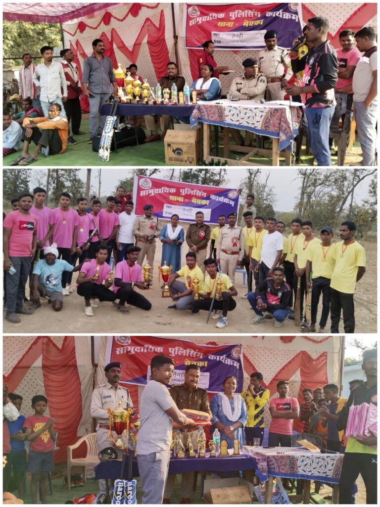 सामुदायिक पुलिसिंग के तहत थाना मेचका द्वारा नक्सल क्षेत्र के ग्राम ठेनही में आयोजित किया गया क्रिकेट प्रतियोगिता