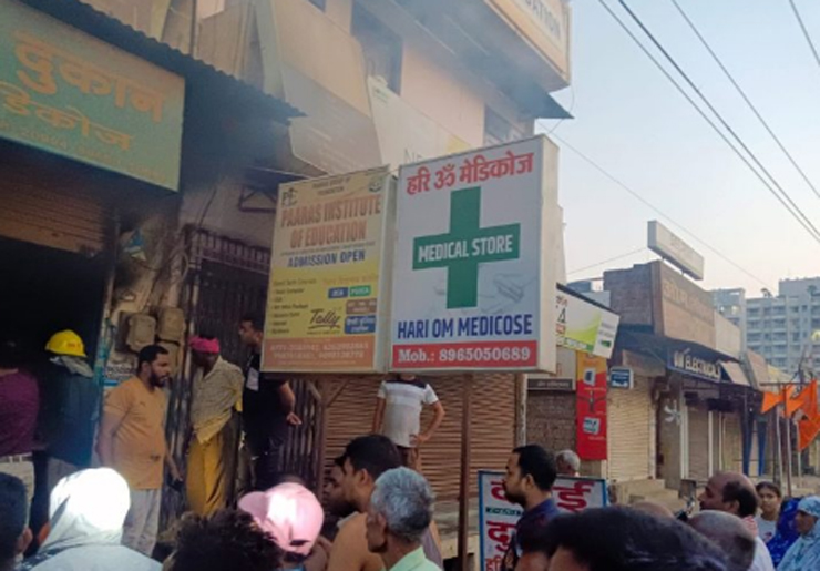 रायपुर। पुरानी बस्ती थाना इलाके के भांटागांव स्थित एक मोबाइल और मेडिकल स्टोर में आज भीषण आग लग गई। दोनों शॉप में रखा लाखों रुपये का सामान जलकर खाक हो गया। इस हादसे से मौके पर अफरा-तफरी मच गई। वहीं घटना की सूचना मिलते ही मौके पर पहुंची फायर ब्रिगेड की 6 गाड़ियों ने आग पर काबू पाया। बताया जा रहा है कि आकाश मोबाइल और हरिओम मेडिकल दुकान में आग लगी थी। फिलहाल आग लगने का कारण अब तक पता नहीं चल पाया है। पुलिस मामले की जांच कर रही है।