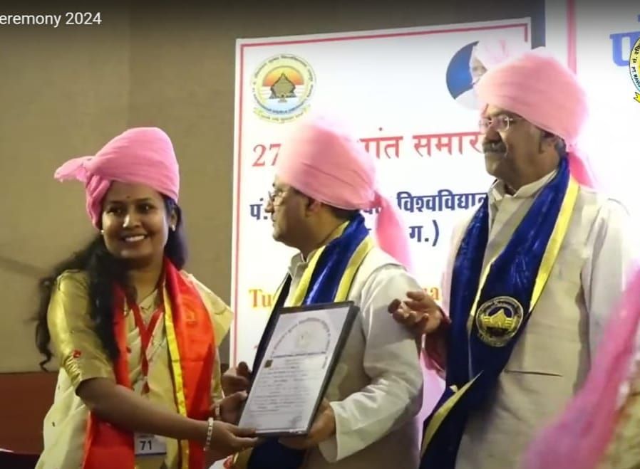 धमतरी (प्रखर) पंडित रविशंकर विश्वविद्यालय का 27 वां दीक्षांत समारोह रायपुर में आयोजित किया गया। मुख्य अतिथि राज्यपाल और कुलाधिपति विश्वभूषण हरिचंदन थे। अध्यक्षता राष्ट्रीय संग्रहालय नई दिल्ली के महानिदेशक प्रोफेसर बुद्धरश्मि मणि तथा विशिष्ट अतिथि उच्च शिक्षा मंत्री बृजमोहन अग्रवाल, कुलपति प्रोफेसर सच्चिदानंद शुक्ला थे। इस समारोह में धमतरी बांसपारा वार्ड निवासी गीतिका सितेश पवार को जीव विज्ञान संकाय के अंतर्गत सूक्ष्म जीव विज्ञान विषय में डॉक्टर ऑफ फिलॉसफी की उपाधि प्रदान की गई। गितिका पवार बांसपारा वार्ड निवासी मंडी के रिटायर्ड कर्मचारी दीपक पवार व ममता पवार की बहू है। इस उपलब्धि पर मराठा समाज धमतरी ने बधाई दी है।