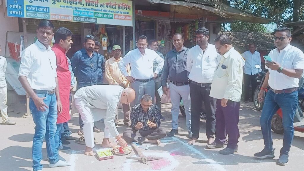 विंध्यवासिनी वार्ड मे फुटपाथ- पाथवे निर्माण कार्य का भूमि पूजन महापौर विजय देवांगन की उपस्थिति में वरिष्ठ जनों द्वारा किया गया