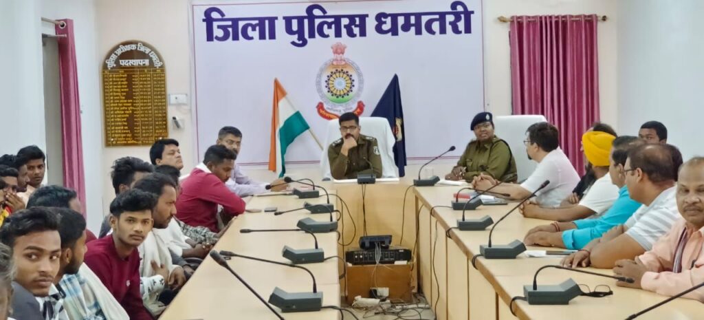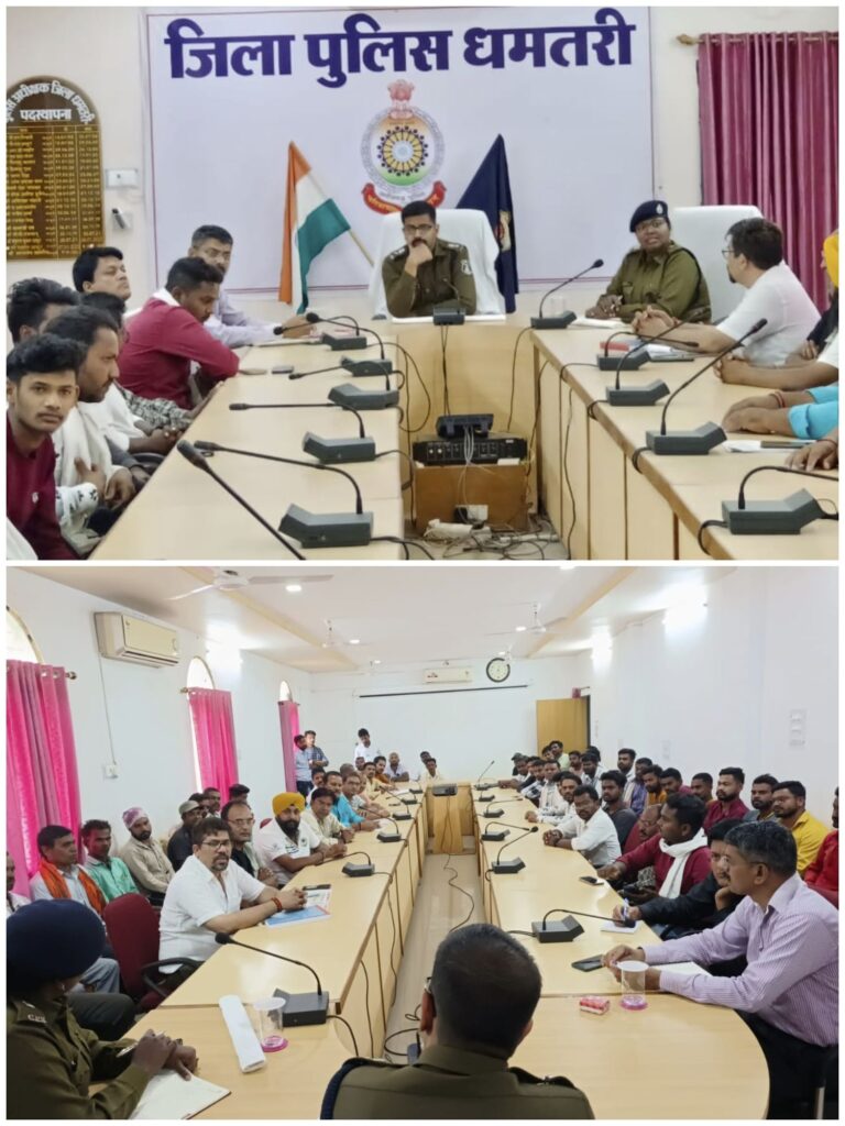 पुलिस अधीक्षक धमतरी द्वारा मान.उच्च न्यायालय के दिशानिर्देश के पालन एवं आगामी होने वाले बोर्ड परीक्षा को मद्देनजर रखते हुए आज ली गई डीजे, साऊंड सिस्टम,एम्पली संचालकों की मिटिंग