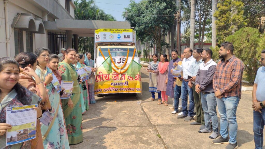 BJS के जिला अध्यक्ष कुशल चोपड़ा ने बताया कि आज हमारे देश में महाराष्ट्र, राजस्थान जैसे बहुत से राज्य जल की समस्या से जूझ रहा है। आने वाले समय में हमे इस तरह की समस्या का सामना न करना पड़े इसलिए इस योजना का शुभारंभ किया गया है। इस योजना के माध्यम से हम लोगो को जल के संरक्षण , जल की उपयोगिता के प्रति जागरूक करने का प्रयास करेंगे। साथ ही जिला प्रशासन धमतरी के सहयोग जल समस्या के संबंध में हमे जो जानकारी मिली है उस आधार पर कार्य करेंगे। चिन्हांकित ग्रामीण क्षेत्रों में तालाब गहरीकरण का कार्य करेंगे साथ ही किसानों को दूसरी फसल में धान न लेने के प्रति भी जागरूक करेंगे। क्योंकि एक ही फसल बार बार लेने से एक ओर जहां एक जमीन की उर्वरक शक्ति कम होती है वही दोनो फसल धान की लेने से जल की समस्या भी उत्पन्न होती है। जबकि फसल चक्र के कारण जमीन की उर्वरक शक्ति बढ़ती है। जल की समस्या को भी काम किया जा सकता है। आज से प्रचार रथ विभिन्न क्षेत्रों में जाकर लोगो को जागरूक करेगा साथ ही उस क्षेत्र के लोगो की आवश्यकताओं को जानने की भी कोशिश भी करेंगे ताकि आने वाले समय में उस पर विचार करते हुए आगे कार्य किया जा सके।