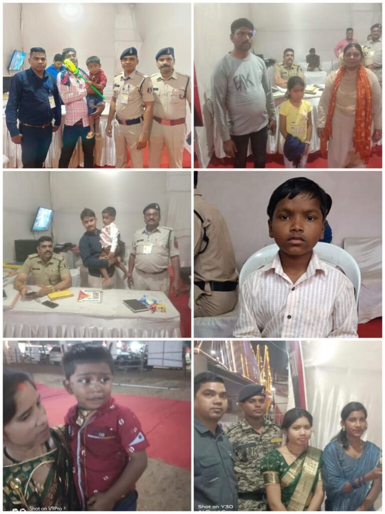धमतरी पुलिस ने राजिम कुंभ मेला में अपने माता पिता से अलग हुए 15 बच्चों को माता,पिता एवं 08 गुम इंसानों को मिलाया परिजनों से