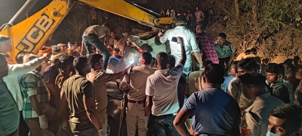 2 घंटे की रेस्क्यू के बाद कार में फंसे शवों को निकाला गया
