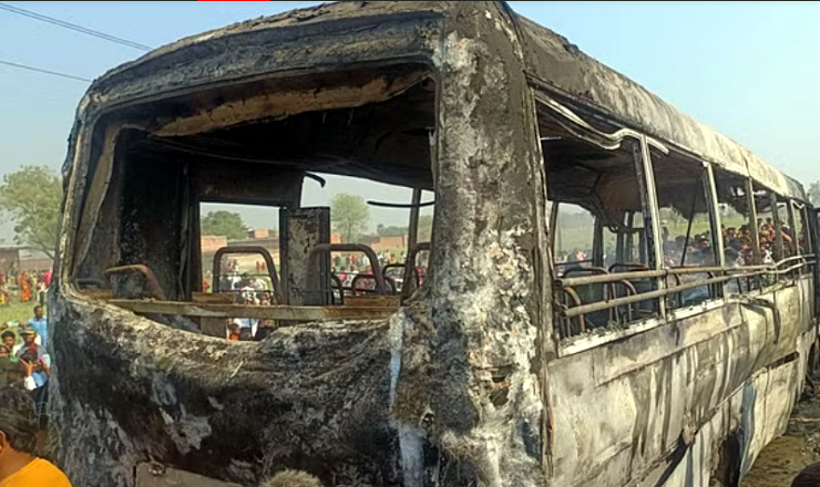 एचटी लाइन के संपर्क में आने से बस में लगी आग, दस लोगों की मौत की खबर