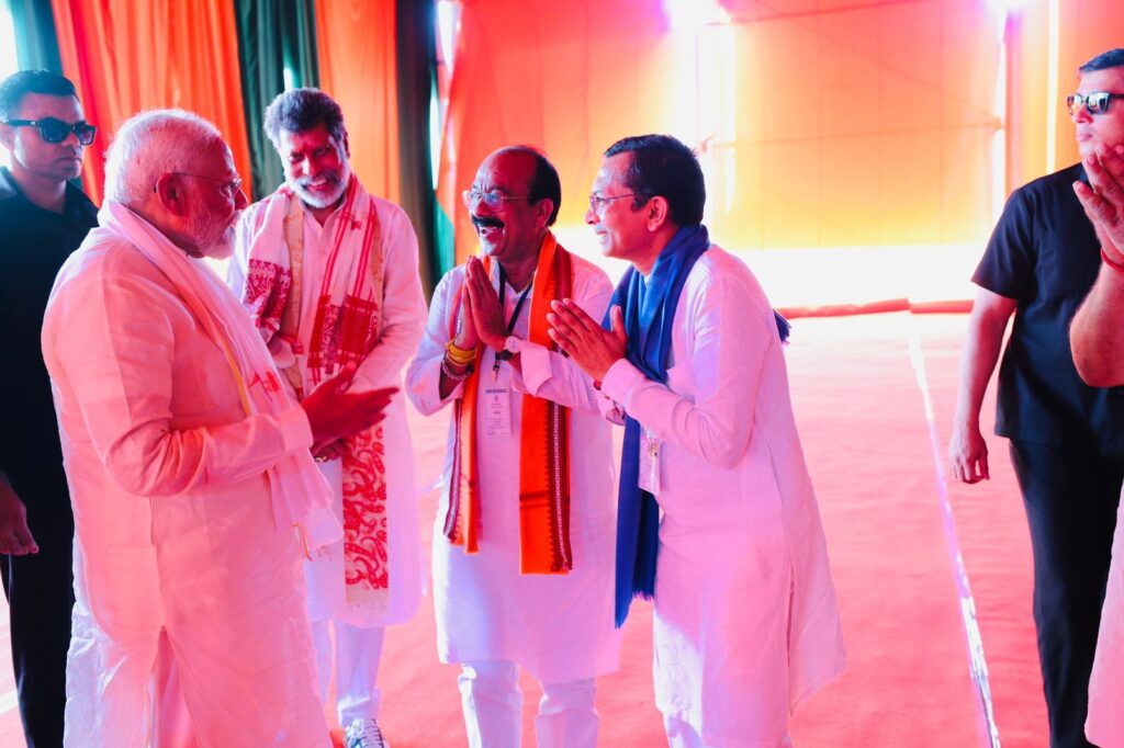 धमतरी(प्रखर) प्रधानमंत्री नरेंद्र मोदी द्वारा चुनावी आमसभा लेने के लिए जब धमतरी के सभा स्थल पहुंचे तो मंच के पीछे उनकी अगुवाई करने के लिए प्रथम क्रम में प्रदेश अध्यक्ष किरण देव उसके बाद उप मुख्यमंत्री अरुण साव ने मोदी जी का स्वागत किया तत्पश्चाप तीसरे क्रम में खड़े उनके सेवक प्रीतेश गांधी पर उनकी नजर पड़ी तो कार्यक्रम की उमड़ी भीड़ को देखकर वह अपने उत्साह को रोक नहीं पाए तथा पार्टी के प्रदेश अध्यक्ष किरण देव एवं उप मुख्यमंत्री अरुण साव की ओर मुखातिब होते हुए उनके सहसा उनके मुंह से निकल गया की प्रीतेश लीडर बन गया जिस पर भाजपा प्रदेश अध्यक्ष ने भी अपनी सहमति जताई अपने प्रति आदरणीय नरेंद्र मोदी जी प्रधानमंत्री श्री के अपनत्व, प्रेम से प्रीतेश गांधी भी भावुक हो गए तथा दोनों हाथ जोड़कर उन्होंने कहा कि आज मैं कृतार्थ हो गया।
