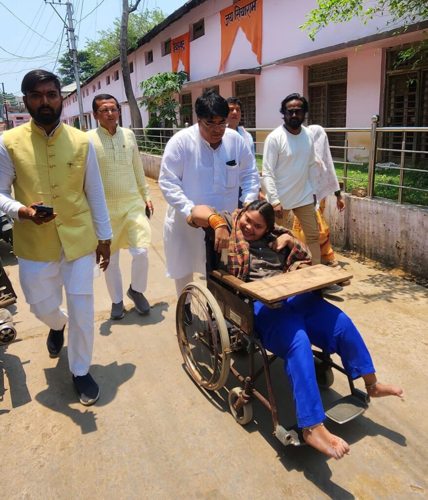 दिव्यांग मतदाता दीपाली सोनी को मतदान सेवा देने पहुंचे भाजपा प्रदेश महामंत्री