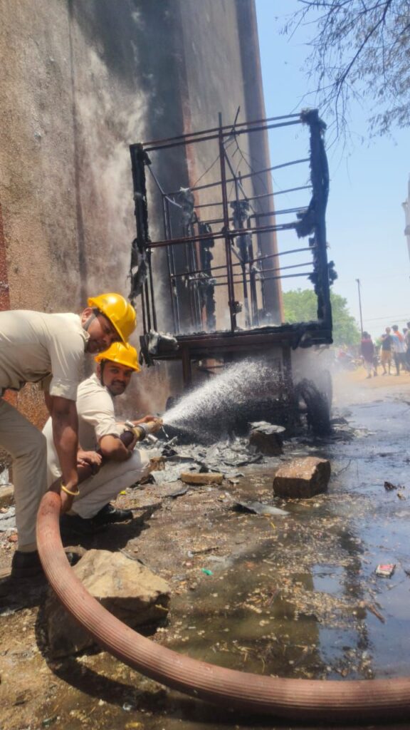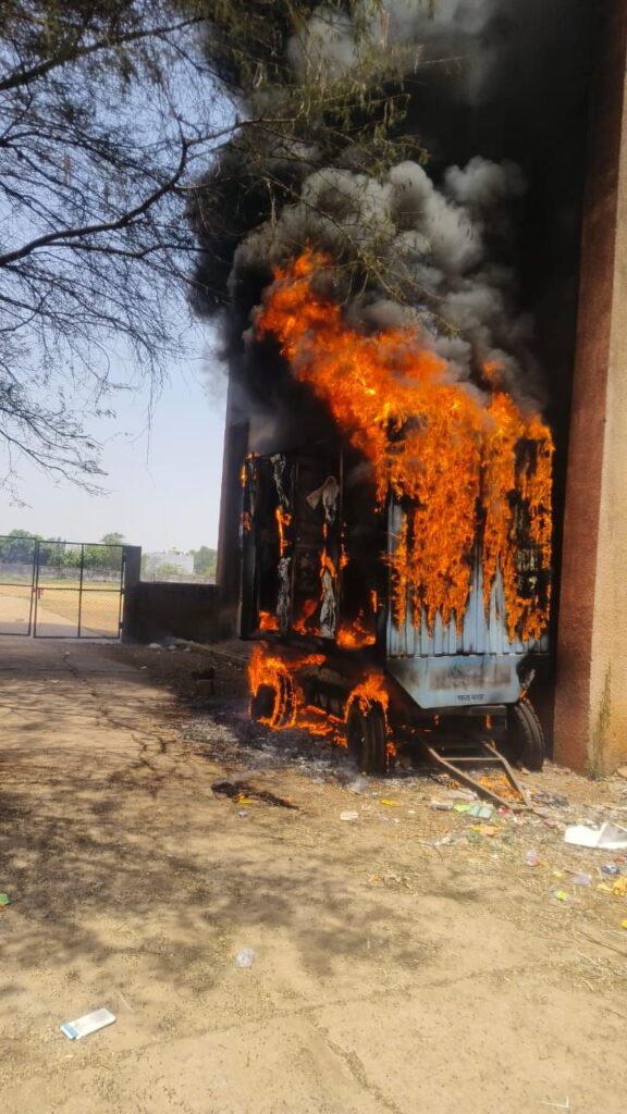 इंडोर स्टेडियम परिसर में खड़ी टॉयलेट गाड़ी में लगी आग पर पाया गया काबू