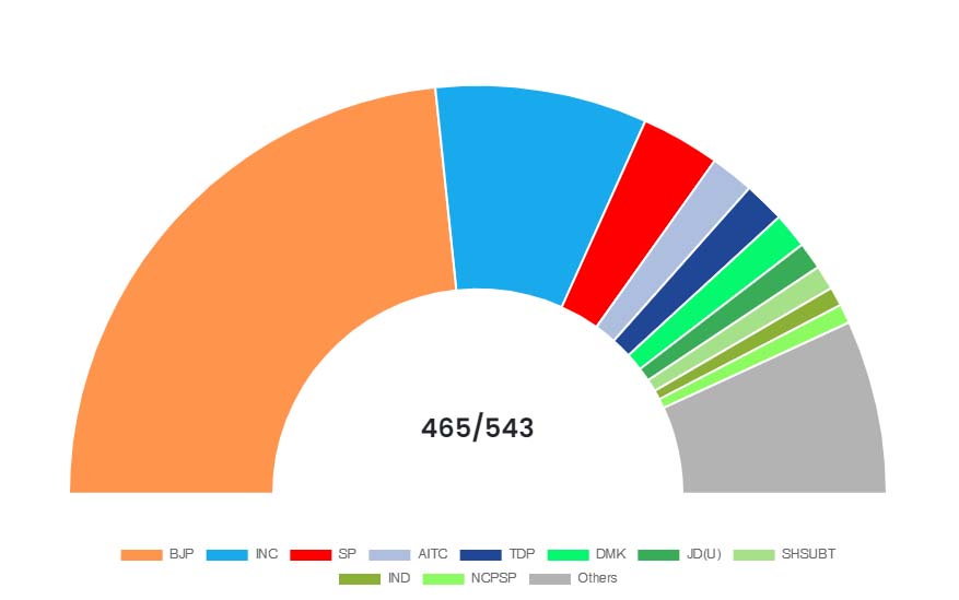लोकसभा चुनाव 2024 के रुझान : NDA को बढ़त, विपक्षी गठबंधन भी दे रहा टक्कर