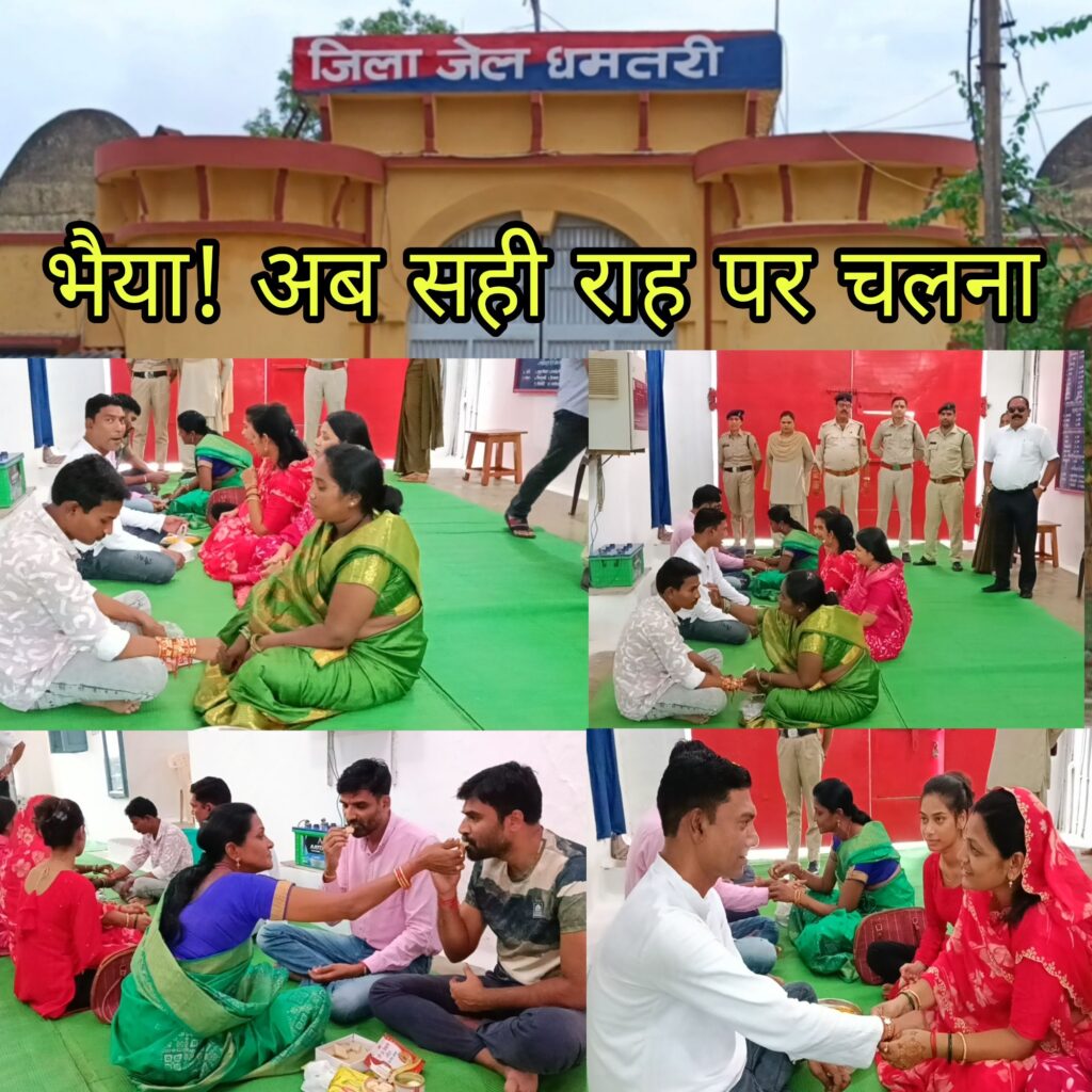 भाई बहन के प्रेम का प्रतीक रक्षाबंधन का पर्व 19 अगस्त को अंचल में मनाया जा रहा है।इस बार कैदी लोगों को असमंजस थी कि क्या इस त्यौहार में उनके कलाईयां सुनी रह जाएंगी। लेकिन इस बार शासन द्वारा रक्षाबंधन पर्व मनाने का आदेश जारी किया गया। धमतरी जेल में भी रक्षाबंधन का पर्व मनाया गया। सुबह 8 से दोपहर 3 तक के लिए यह व्यवस्था की गई। सुबह से ही अंदर में बंद बंदी और कैदियों की बहने पहुंच चुकी थी। रक्षाबंधन के गानों के बीच नम आंखों से बहनों ने अपने भाइयों से वादा लिया कि जेल से बाहर निकालने के बाद अच्छे राह पर चलना है।