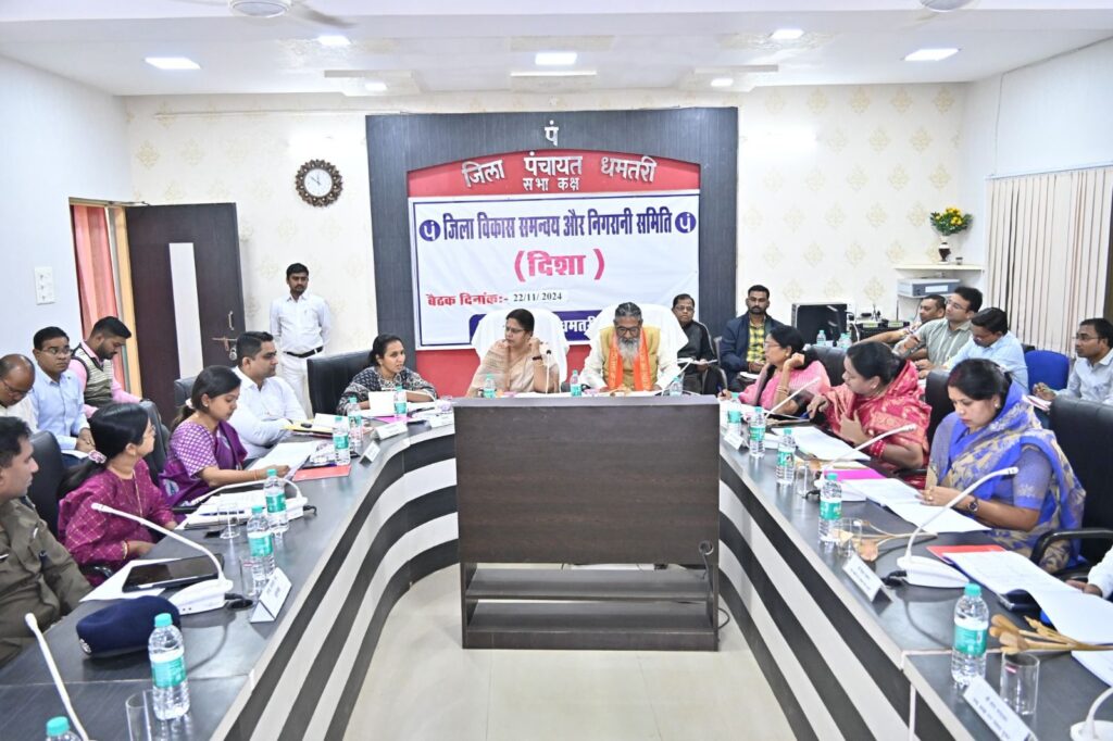 धमतरी(प्रखर)सांसद लोकसभा क्षेत्र महासमुंद श्रीमती रूपकुमारी चौधरी की अध्यक्षता और सांसद लोकसभा क्षेत्र कांकेर भोजराज नाग की उपस्थिति में आज जिला पंचायत सभाकक्ष में जिला विकास समन्वय एवं निगरानी समिति(दिशा) की बैठक आयोजित की गई। बैठक में सांसद श्रीमती रूपकुमारी चौधरी ने कहा कि केन्द्र की लोक कल्याणकारी योजनाओं की समीक्षा के लिए जिला विकास एवं निगरानी समिति की यह बैठक आयोजित की गई है। उन्होंने कहा कि लंबित कार्य निर्धारित समयावधि में करने की जरूरत है। उन्होंने कहा कि जरूरतमंद के हित में सभी आपसी समन्वय से कार्य करें। वहीं सांसद श्री भोजराज नाग ने केन्द्र एवं राज्य शासन की योजनाओं का लाभ अंतिम व्यक्ति तक पहुंचे, इसके लिए व्यापक प्रचार-प्रसार कर लाभान्वित करने कहा। बैठक में विधायक सिहावा श्रीमती अंबिका मरकाम, विधायक प्रतिनिधि कुरूद गौकरण साहू, पूर्व विधायक धमतरी श्रीमती रंजना साहू, जिला पंचायत अध्यक्ष श्रीमती कांति सोनवानी, जनपद पंचायत अध्यक्ष नगरी श्रीमती दिनेश्वरी नेताम, नगर पंचायत मगरलोड की अध्यक्ष श्रीमती नीतू साहू, नगर पंचायत अध्यक्ष नगरी श्रीमती आराधना शुक्ला, अन्य जनप्रतिनिधि, कलेक्टर सुश्री नम्रता गांधी, सीईओ जिला पंचायत सुश्री रोमा श्रीवास्तव, वनमण्डलाधिकारी श्रीकृष्ण जाधव सहित विभागीय अधिकारी उपस्थित रहे।