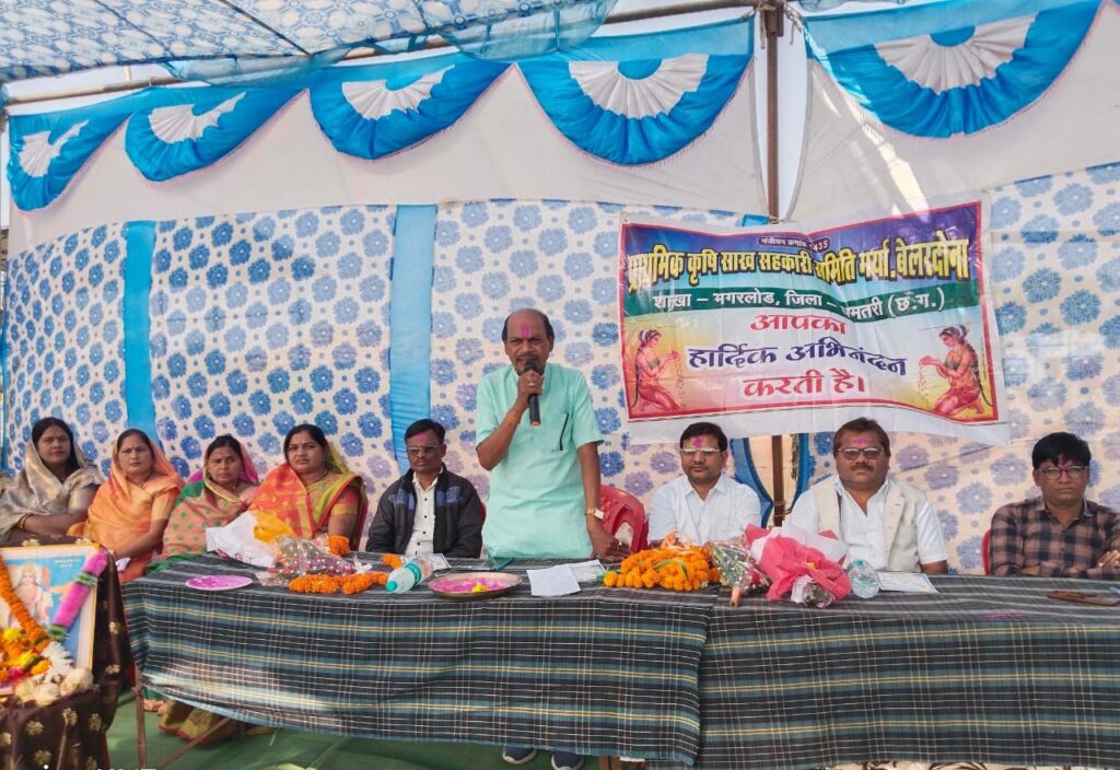 मगरलोड(प्रखर) प्राथमिक कृषि साख सहकारी मर्यादित समिति बेलरदोना में नव नियुक्त सोसायटी अध्यक्ष का पद ग्रहण हुआ। पद ग्रहण समारोह के मुख्य अतिथि राज्य पिछड़ा वर्ग आयोग के अध्यक्ष नेहरू राम निषाद रहे। अध्यक्षता नरेश सिन्हा भाजपा जिला उपाध्यक्ष ने की। विशिष्ट अतिथि पूर्व जनपद सदस्य भवानी यादव, जनपद सदस्य हीरामन ध्रुव,मंडल महामंत्री एवन साहू, महिला मोर्चा अध्यक्ष उर्वशी साहू , पूर्व सोसायटी अध्यक्ष ओंकार कपूर, पार्षद नप दुर्गा साहू, नंदनी सिन्हा, लोकेश साहू, शांति देवांगन,भानुप्रिया साहू रहे। नव नियुक्त सोसायटी अध्यक्ष लालेश्वर सिन्हा ने पद भार ग्रहण किया। मुख्य अतिथि राज्य पिछड़ा वर्ग आयोग अध्यक्ष नेहरू राम निषाद ने किसानों को संबोधित करते हुए कहा कि प्रदेश में विष्णु देव साय की सरकार हमेशा किसानों के साथ है। सरकार 3100 रूपये प्रति क्विंटल की दर से धान की खरीदी कर रही है। किसानों के सभी मांगो को पूरा कर रही है। केन्द्र में मोदी सरकार व राज्य सरकार किसानों के आय दोगुना करने की निरंतर प्रयास कर रही है। पंडित दीनदयाल उपाध्याय योजना बनाकर गांव व शहर में विकास कर रही है। भाजपा जिला उपाध्यक्ष नरेश सिन्हा ने कहा प्रदेश सरकार किसानों के सुख दुख में साथ में है। समर्थन मूल्य पर किसानों की धान खरीदी सुचारू रूप से कर रहे है। इस अवसर पर झनेश्वर साहू, मुरली सिन्हा, मिलन नेताम,जगदीश साहू, सुखदेव साहू, जीवराखन साहू,घनश्याम बिनझेकर, कीर्तन साहू, महेश साहू, टोप सिंह साहू, समिति प्रबंधक द्वारका प्रसाद साहू , लिपिक जागेश्वर साहू, कंप्यूटर ऑपरेटर सुरेश पारकर, बिहारी लाल निर्मलकर, दिनेश कुमार, हिना सिन्हा समेत कृषक उपस्थित रहे।