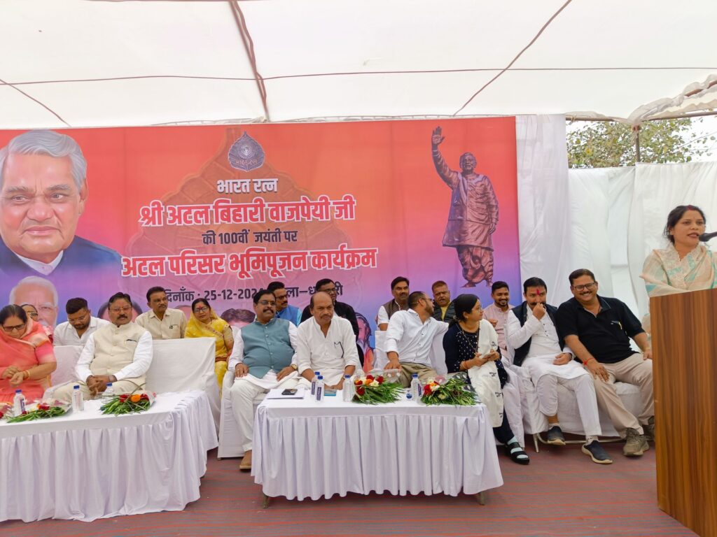 धमतरी (प्रखर)देश के पूर्व प्रधानमंत्री भारत रत्न  श्री अटल बिहारी वाजपेयी की आज 100 वीं जयंती मनाई गई। इस  अवसर  पर आज अटल सुशासन दिवस के तौर पर धमतरी स्थित संबलपुर चौक में अटल परिसर भूमि पूजन किया गया। इस दौरान प्रदेश के मुख्यमंत्री श्री विष्णु देव साय अटल परिसर भूमि पूजन कार्यक्रम में वर्चुअल जुड़े।
