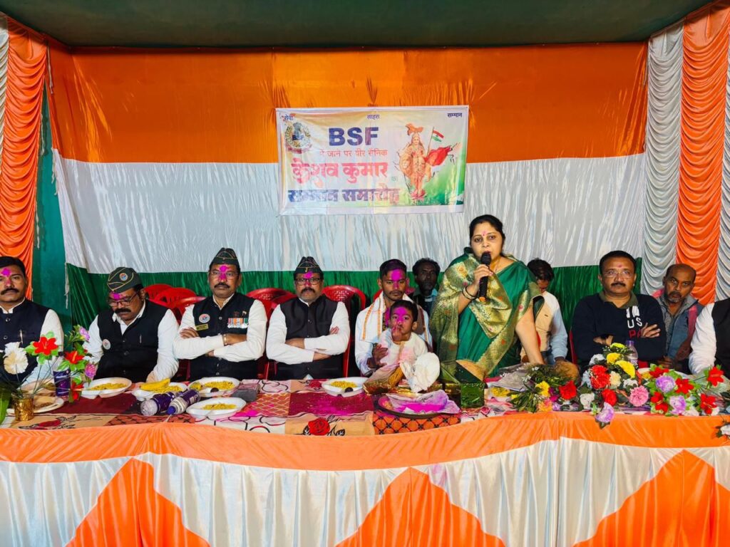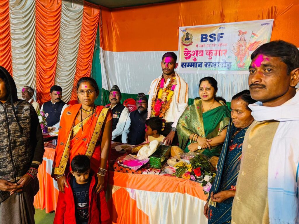 धमतरी(प्रखर) ग्राम खरेंगा निवासी केशव कुमार डहरे का चयन भारतीय सीमा सुरक्षा बल BSF में चयन हुआ है इस उपलक्ष्य में सम्मान समारोह एवं विदाई का कार्यक्रम आयोजित किया गया इस कार्यक्रम की मुख्य अतिथि जिला पंचायत वन समिति सभापति कविता योगेश बाबर थी कार्यक्रम की अध्यक्षता श्री के पी साहू भूतपूर्व सैनिक अखिल भारतीय सैनिक परिषद रहे कार्यक्रम के इस अवसर पर श्रीमती बाबर ने उपस्थित परिवार जनों एवं जन समुदाय को संबोधित करते हुए कहा कि ग्राम खरेंगा का एक पुत्र आज भारतीय सीमा सुरक्षा बल में अपनी सेवाएँ प्रदान करने जा रहा है उसके अनंत जीवन के लिए हम सभी शुभकामनाएं देते हैं आज इनके जैसे युवाओं के बदौलत ही देश सुरक्षित है और हम अपने घर में सुख चैन से रह पाते हैं जो सीमा पर खड़े होकर देश सेवा की भावना लेकर हम सबकी रक्षा के लिए सदैव तत्पर रहते हैं भारतीय सेना में जाना अपने आप में एक बहुत ही गौरवान्वित करने वाला क्षण है उन्होंने कहा कि देश की सेवा का जज़्बा मन में लेकर चलना अपने आप में एक बहुत ही कठिन कार्य है जिसे आज केशव ने करके दिखाया है हम इनके भावी जीवन के लिए ईश्वर से प्रार्थना करेंगे कि वो अपना कार्यकाल सफलतापूर्वक करके अपने गाँव अपने देश का नाम रोशन करेंगे कार्यक्रम के इस अवसर पर अखिल भारतीय पूर्व सैनिक परिषद से मुरारी लाल साहू अजय पुरी गोस्वामी दिलीप साहू अजय नामदेव मुख्य रूप से उपस्थित थे एवं उनके परिवारजन पिता श्री टीकाराम डहरे सविता बाई डहरे एवं उनके मित्रगण एवं बड़ी संख्या में ग्रामवासी उपस्थित थे जिन्होंने केशव को विदाई एवं सम्मान के साथ रवाना किया ।