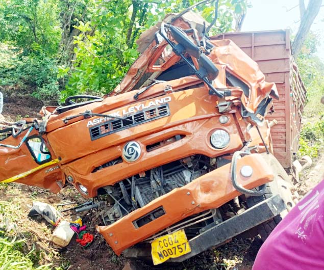 तेंदूपत्ता से भरी ट्रक पलटी, दो लोगों की मौत
