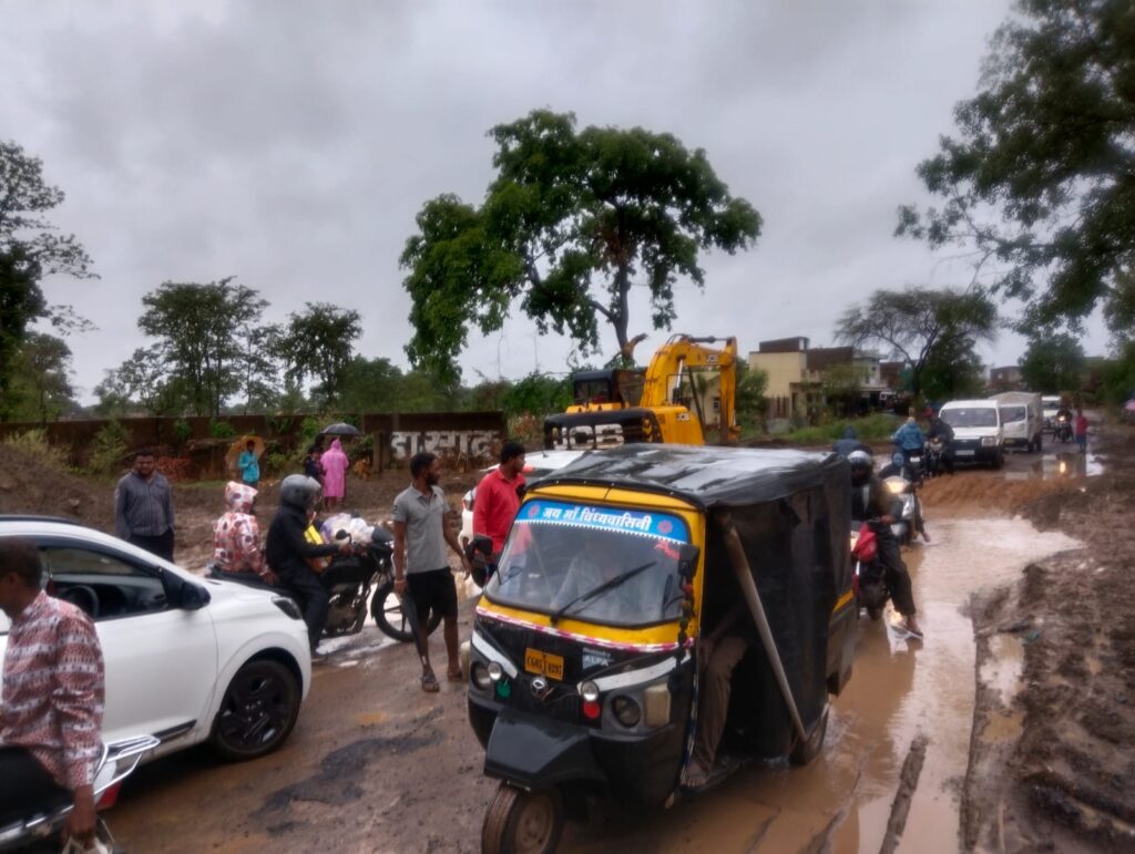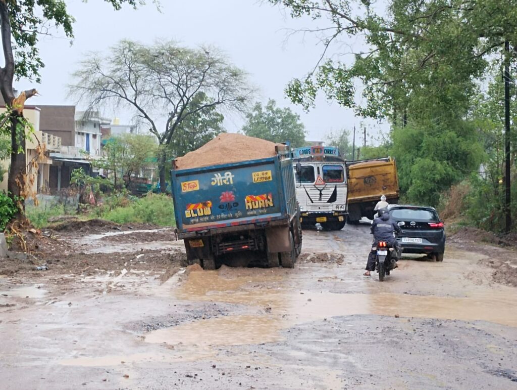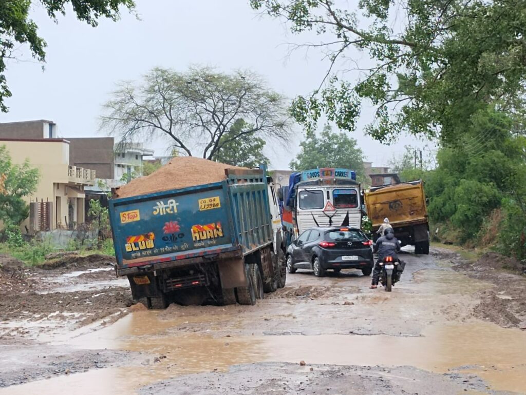 धमतरी – जहां एक और शासन प्रशासन आम जनता के लिए सड़कों को दुरुस्त करने और नई सड़क के साथ यातायात को सुगम करने और यातायात के दबाव को कम करने बाईपास का निर्माण कर रहे हैं । वही ग्राम मुजगहन से गुजरने वाली धमतरी मुजगहन गुंडरदेही रोड अपनी अलग ही दुर्दशा को दिखाती है। जिसे लेकर मुजगहन ग्राम वासियों ने शासन प्रशासन को कई बार सड़क की स्थिति से अवगत कराया है जहां कई दुर्घटनाएं कई घायल हुए और कई मौत हो चुकी है। साथ ही राहगीरों को हर मौसम में इस सड़क के गड्ढे और धूल से बचकर अपने गंतव्य मार्ग में जाने के लिए के लिए काफी मुश्किलों का सामना करना पड़ता है वही लगातार हो रही बारिश से मुजगहन से गुजरने वाली रोड की सड़क बद से बदतर हो चुकी है ।जहां कई बड़े-बड़े गड्ढे और बारिश के कारण बड़े-बड़े गड्ढों में पानी भर चुका है जहां अभी झमाझम बारिश हो रही है । आज तड़के सवेरे रास्ते पर दो हाईवा बाईपास पुल पर फस गई ।जिससे मार्ग आवागमन ठप पड़ गया था ।जिस घटना मैं एक हाईवा का पट्टा टूट गया और वही बाजू में दूसरे हाईवे बाईपास पुल के सामने पानी निकालने के लिए सड़क को खोदकर पाइप लगा सड़क के ऊपर मिट्टी से ढके सड़क पर चलते ही जाकर फस गई जिससे सवेरे से कई घंटों तक आवागमन बाधित रहा ।कुछ घंटों तक तो मोटरसाइकिल वाले ही वहां से निकल पा रहे थे और 4 चक्के वाली कारें और गाड़ियां जाम की स्थिति में फंसी हुई थी जिन्होंने अपने गंतव्य मार्ग तक जाने के लिए लोहारसी मोड़ से जाना पड़ा जिसे देखते हुए कुछ लोगों ने पट्टा टूटे हुए हाईवे को हल्का सा खींच खींच कर आगे किया तब जाकर 4 चक्के वाली गाड़ियां और कार निकल पाई । बारिश पर बाईपास पुल से दुग्ध शीत केंद्र तक गड्ढों का आलम यह है कि सड़क तो दिखता नहीं, लगता ऐसा है कि कोई तलाब बना हुआ है ।जिसमें आने जाने वाले राहगीर राहगीरों को काफी दिक्कतों का सामना करना पड़ रहा है ।जिससे कई राहगीर गड्ढों में गिरकर घायल हो रहे हैं जिसे देखते हुए ग्राम के युवाओं ने 28 तारीख को बड़े स्तर पर चक्काजाम की चेतावनी दी है। उसके बाद भी अभी तक शासन प्रशासन नहीं जागा है इस मामले को लेकर ग्राम वासियों द्वारा कई जनप्रतिनिधियों से गुहार लगा चुके हैं मगर वह यहां आकर फोटो खिंचवा कर आश्वासन देकर चले जाते हैं मगर इस मामले को लेकर किसी ने कोई पहल अभी तक नहीं की । इस सड़क पर राहगीर घायल व हो रही मौतों का जिम्मेदार कौन होगा।