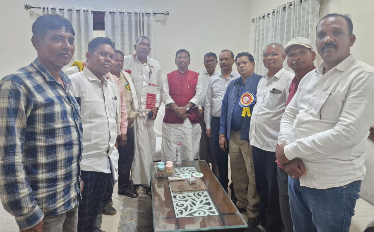 धमतरी(प्रखर) अनुसूचित जनजाति शासकीय सेवक विकास संघ छत्तीसगढ़ एवं सामाजिक प्रमुखों द्वारा झारखंड के तीन बार के मुख्यमंत्री अर्जुन मुंडा जी पूर्व केंद्रीय मंत्री भारत सरकार से राज्य अतिथि गृह पहुना में भेंटकर विभिन्न संवैधानिक मुद्दों पर सार्थक चर्चा किये। संघ के प्रदेश अध्यक्ष आर एन ध्रुव ने अवगत कराया की सुप्रीम कोर्ट के अंतरिम राहत के बावजूद छत्तीसगढ़ में आदिवासियों को पदोन्नति में आरक्षण नहीं मिल रहा है। जिसके कारण इस वर्ग के अधिकारी कर्मचारियों को भारी नुकसान झेलना पड़ रहा है।उन्होंने कहा कि बस्तर और सरगुजा में स्थानीय स्तर पर भर्ती नहीं होने के कारण वहां के मूल निवासियों को शासकीय सेवाओं में रोजगार के पर्याप्त अवसर नहीं मिल रहे हैं। श्री अर्जुन मुंडा जी ने आश्वत किए की इन समस्याओं के समाधान का रास्ता निकाला जाएगा। उन्होंने कहा कि आदिवासी क्षेत्रों में जल– जंगल– जमीन का नैसर्गिक अधिकार आदिवासियों को है। यह अधिकार आदिवासियों से कोई भी नहीं छीन सकता।