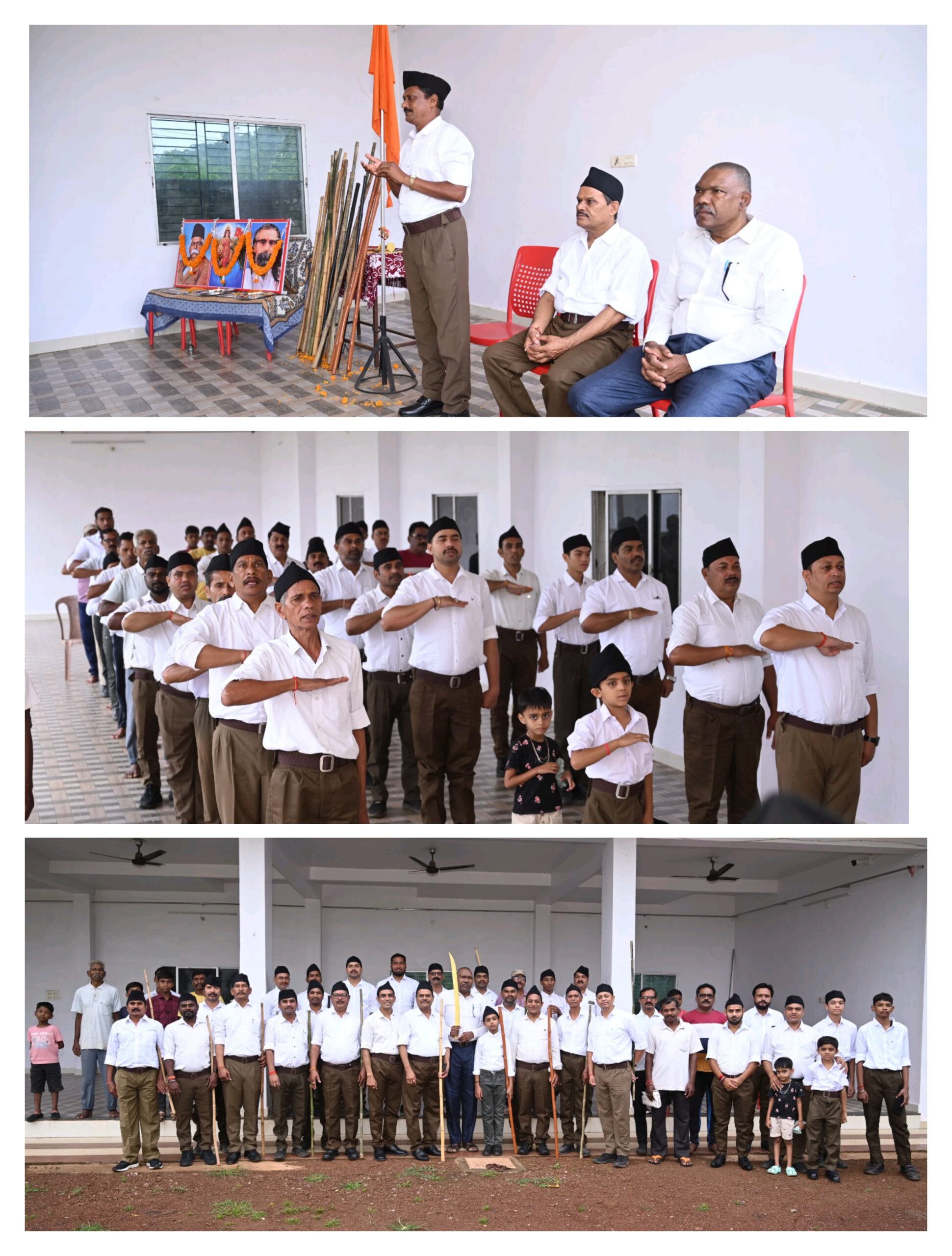 धमतरी : 2 अक्टूबर को दानवीर भामाशाह प्रभात शाखा रुद्री में राष्ट्रीय स्वयंसेवक संघ के स्वयंसेवकों के द्वारा विजयादशमी उत्सव को शस्त्र पूजन करके मनाया गया। कार्यक्रम में संघ के आचार विभाग के अनुसार भगवा ध्वज फहराया गया तत्पश्चात अतिथियों के द्वारा शस्त्र पूजन किया गया।उपस्थित सभी स्वयंसेवक और आगंतुको के द्वारा भी शस्त्र पूजन किया गया फिर राष्ट्रभक्ति गीत सुभाषित और अमृत वचन पश्चात उपस्थित अध्यक्षता कर रहे राष्ट्रीय स्वयंसेवक संघ नगर सहसंघचालक शर्मा जी के द्वारा बताया गया कि संघ  नागपुर के मोहिते बाड़ा में 1925 को करीब बारह बच्चों के द्वारा शुरू हुआ और आज वर्ष 2025 में संघ अपना 100 वर्ष पूर्ण कर रहा है और पूरे विश्व का सबसे बड़ा संगठन बनकर तैयार हुआ है। संघ के संस्थापक डॉक्टर केशव बलिराम हेडगेवार जी के जीवन चरित्र  के साथ देश की आजादी और आजाद भारत के बाद भारत कि भविष्य और सनातन संस्कृति को लेकर जो संघर्ष हुआ उसका चित्रण किया गया ।
