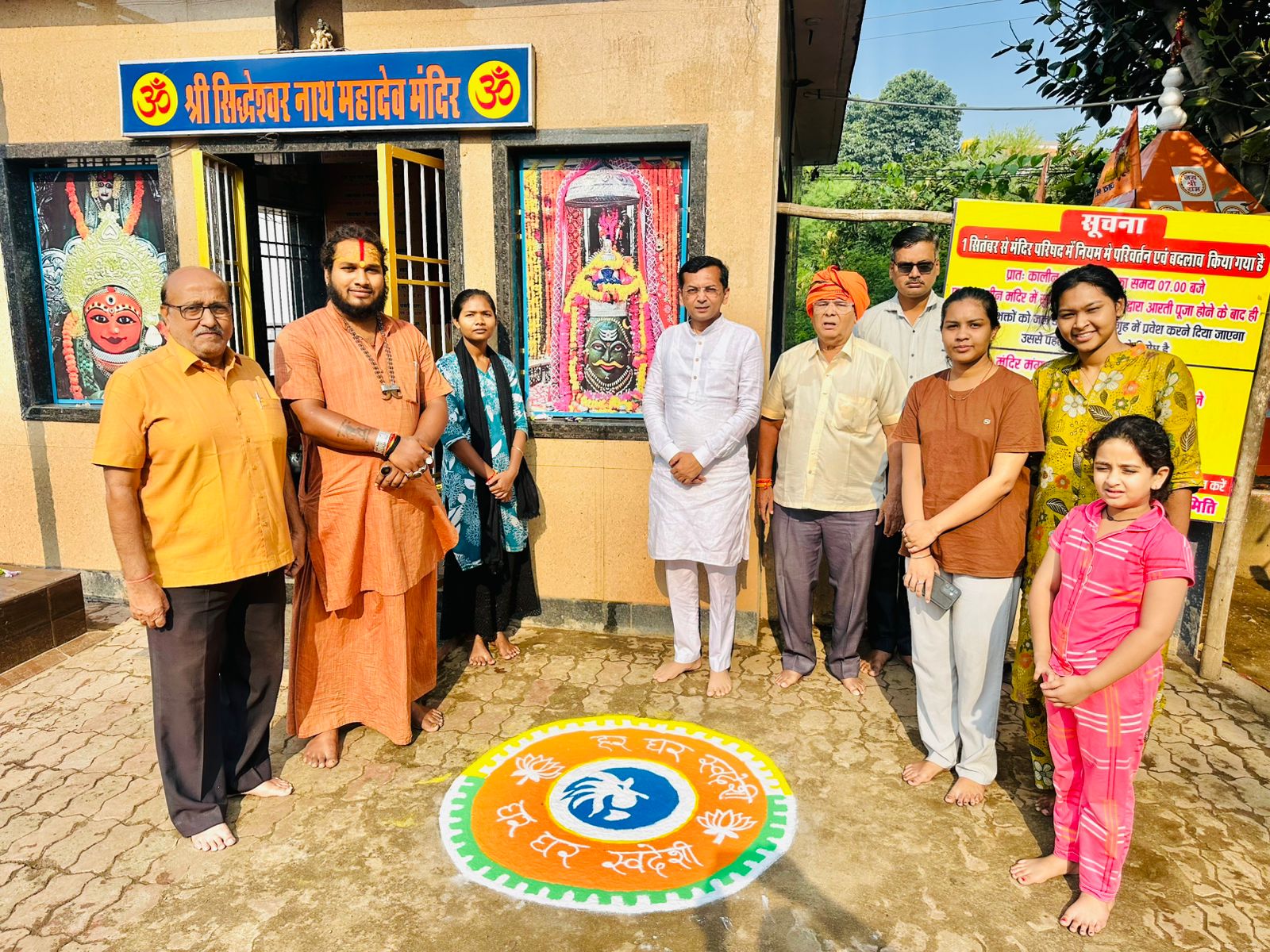 धमतरी-: आत्मनिर्भर भारत सशक्त राष्ट्र की ओर अग्रसर करने के लिए प्रधानमंत्री नरेंद्र मोदी *हर घर स्वदेशी, घर-घर स्वदेशी* का नारा देते हुए देशवासियों को देश में ही निर्मित वस्तुओं के उपयोग हेतु प्रेरित कर रहे हैं इन्हीं भावनाओं को आगे बढ़ाने के लिए गुजराती कॉलोनी के मुख्य प्रवेश द्वार पर स्थित श्री सिद्धेश्वर नाथ महादेव मन्दिर में दीपावली व धनतेरस के पावन पर्व पर आज रंगोली बना कर स्वदेशी की उपयोगिता का संदेश देता हुआ आकर्षक सतरंगी छटा में चित्रकला उकेरा गया, जो आने जाने वाले राहगीरों के लिए प्रेरणादायक होने के साथ-साथ देश के प्रति आस्था, निष्ठा व श्रद्धा का प्रगटीकरण कर रहा है जिसका माध्यम बने भारतीय जनता पार्टी छत्तीसगढ़ प्रदेश सह कार्यालय मंत्री एवं सर्व गुजराती समाज के प्रदेश अध्यक्ष प्रीतेश गांधी ने रंगोली को बनानें में अपना योगदान देकर देशभक्ति एवं राष्ट्र उत्थान का संदेश देने वाली अवनी यादव,भूमि यादव,मनीषा ध्रुव का सम्मान करते हुए उपस्थितजनों से आग्रहपूर्वक कहा कि आज देश के प्रधानमंत्री नरेंद्र भाई मोदी *आत्मनिर्भर भारत के थीम एवं पवित्र सूत्रवाक्य को लेकर विकसित राष्ट्र- 2047 की नींव रख रहे हैं*, जिसमें हम सबको योगदान देने के लिए आगे आना चाहिए जिसका सशक्त एवं सार्थक माध्यम हमारे सार्वजनिक समारोह हमारे त्यौहार तथा हमारे जीवन के यादगार लम्हों को बनाया जा सकता है और यही वर्तमान समय में राष्ट्र के प्रति निष्ठा तथा समर्पण का भाव प्रकट करता है भारतीय जनता पार्टी छत्तीसगढ़ प्रदेश सह कार्यालय मंत्री एवं सर्व गुजराती समाज के प्रदेश अध्यक्ष प्रीतेश गांधी ने क्षेत्रवासियों से आग्रह करते हुए आह्वान किया है कि दीपावली का यह अवसर भी हम सबको यही संदेश देते हुए अपने जीवन के प्रत्येक दिनचर्या के कार्यों में स्वदेश में निर्मित वस्तुओं का समाविष्ट करना चाहिए इससे ही देशवासियों का जीवन खुशहाल तथा समृद्धि की ओर अग्रसर होगा. इस अवसर पर मुख्य रूप से नादू त्रिवेदी,हरि कटारिया,हर्ष तिवारी,राजेंद्र शर्मा पूर्व सभापति नगर निगम,कुलेश सोनी पार्षद,सरिता यादव पूर्व पार्षद, शुभाश शर्मा,विष्णु सिन्हा, केदार साहू आदि भक्त मौजूद थे।