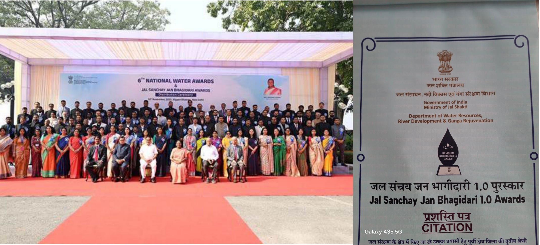 राष्ट्रीय उपलब्धि — धमतरी को मिला 8th पुरस्कार (पूर्वी क्षेत्र)जल संचय जनभागीदारी 1.0 के तहत