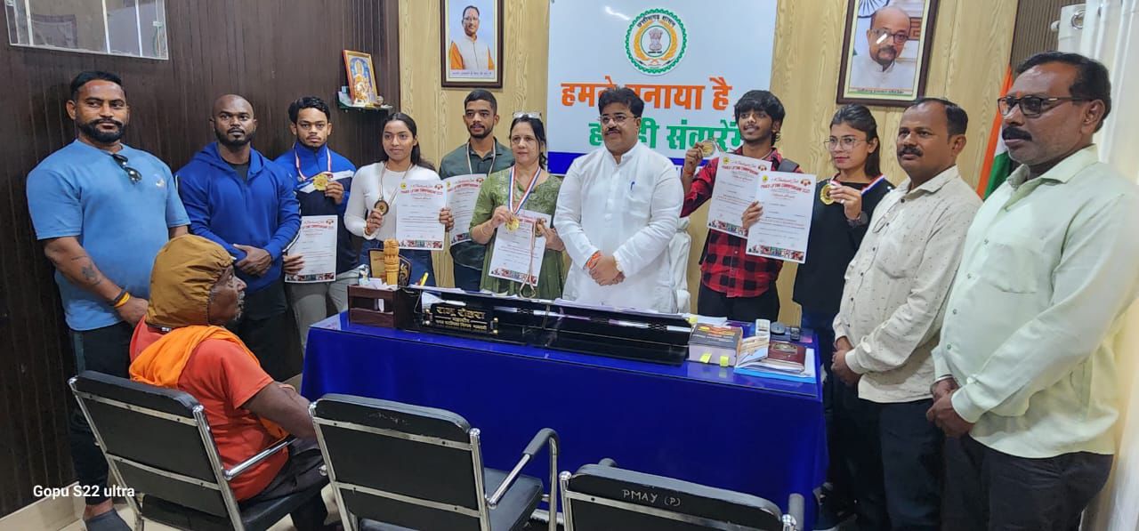 महापौर रामू रोहरा ने निगम कार्यालय में किया मेडलिस्ट पावर लिफ्टिंग एवं बॉडीबिल्डिंग चैंपियनों का सम्मान