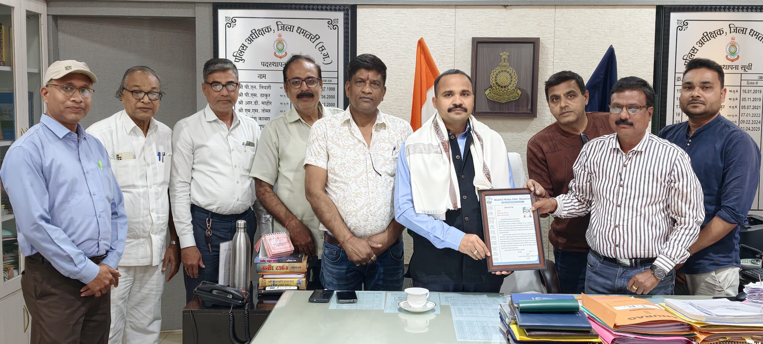 धमतरी(प्रखर) जिले को नक्सल मुक्त बनाने की दिशा में प्रभावी रणनीति, सतत अभियान और साहसिक पुलिस कार्रवाई के माध्यम से उल्लेखनीय सफलता दिलाने वाले पुलिस अधीक्षक सूरज सिंह परिहार का डिस्ट्रिक्ट मीडिया क्लब की ओर से सम्मान किया गया। इस अवसर पर मीडिया क्लब ने जिले की कानून-व्यवस्था को सुदृढ़ करने, नक्सली गतिविधियों पर निर्णायक नियंत्रण और आमजन में सुरक्षा का विश्वास स्थापित करने हेतु पूरी धमतरी पुलिस टीम को बधाई एवं शुभकामनाएं प्रेषित कीं।