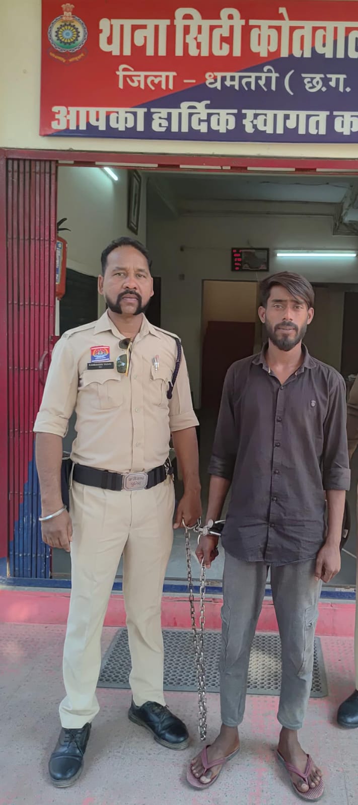 पूछताछ में आरोपी ने अपना नाम दुमेन्द्र लहरे उर्फ छोटु (25 वर्ष) निवासी चापड़ा गली हटकेशर, धमतरी बताया। जांच में पता चला कि आरोपी पूर्व से जिला बदर आदेश के अधीन है और धमतरी जिले में प्रवेश की कोई वैध अनुमति उसके पास नहीं थी।