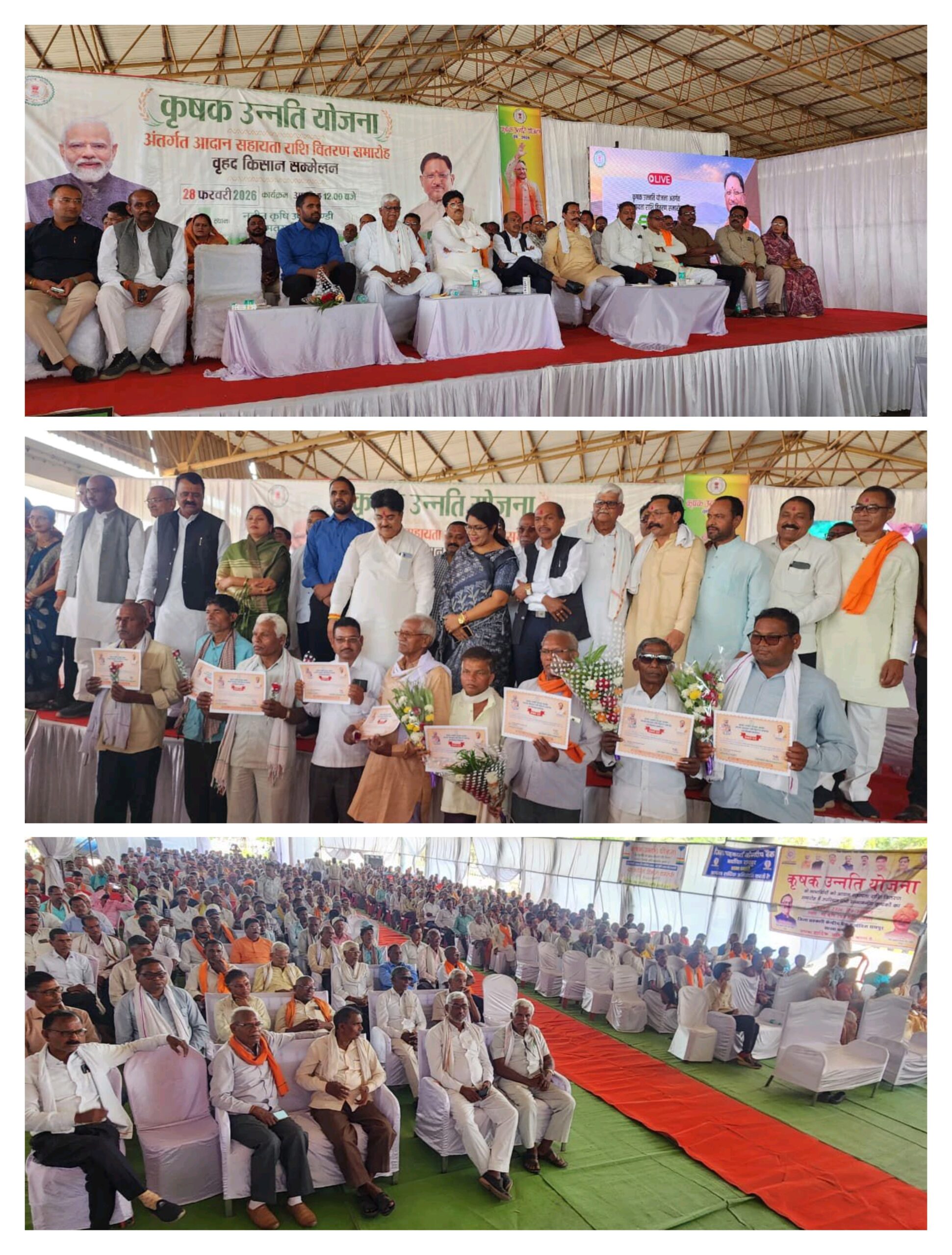 कार्यक्रम के दौरान किसानों को शासन की विभिन्न कृषि हितैषी योजनाओं की जानकारी दी गई तथा पात्र किसानों के खातों में आदान सहायता राशि का अंतरण किया गया। इस अवसर पर जिलेभर से बड़ी संख्या में किसान उपस्थित रहे। सम्मेलन में कृषि विभाग के अधिकारियों द्वारा उन्नत खेती, नवीन तकनीकों, जैविक खेती, फसल विविधीकरण एवं शासन की योजनाओं का लाभ लेने की प्रक्रिया पर विस्तृत मार्गदर्शन दिया गया।