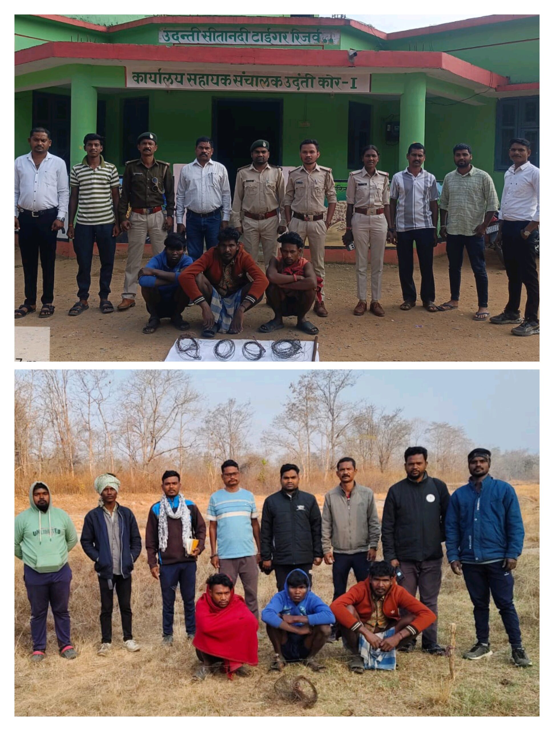 गश्त के दौरान दक्षिण उदंती वन परिक्षेत्र अंतर्गत बंजारीबहार बीट के कक्ष क्रमांक 21 कोर क्षेत्र में जंगल में आग लगाकर एवं फंदा बिछाकर शिकार की तैयारी कर रहे तीन व्यक्तियों को मौके पर पकड़ा गया। गिरफ्तार आरोपियों की पहचान जयलाल व. लखीराम (उम्र 35 वर्ष), पनसिंग व. लालसिंग (उम्र 22 वर्ष) तथा रायसिंग व. मधुराम (उम्र 20 वर्ष), सभी निवासी जिला नुआपाड़ा (ओडिशा) के रूप में हुई है।