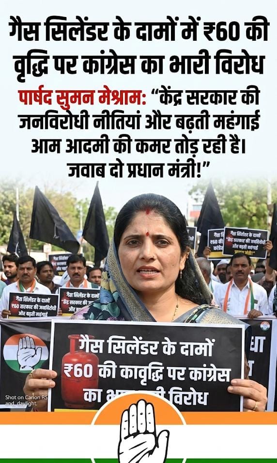 गैस सिलेंडर के दामों में 60 रुपये की वृद्धि पर कांग्रेस का विरोध, पार्षद सुमन मेश्राम ने केंद्र सरकार को घेरा