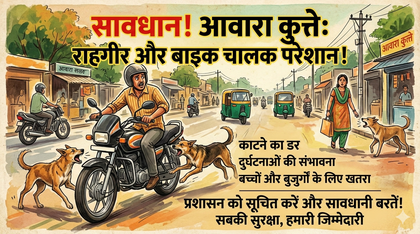 शहरवासियों ने प्रशासन से आवारा कुत्तों को पकड़ने और उचित व्यवस्था करने की मांग करते हुए शहर की सड़कों को सुरक्षित बनाने की अपील की है।