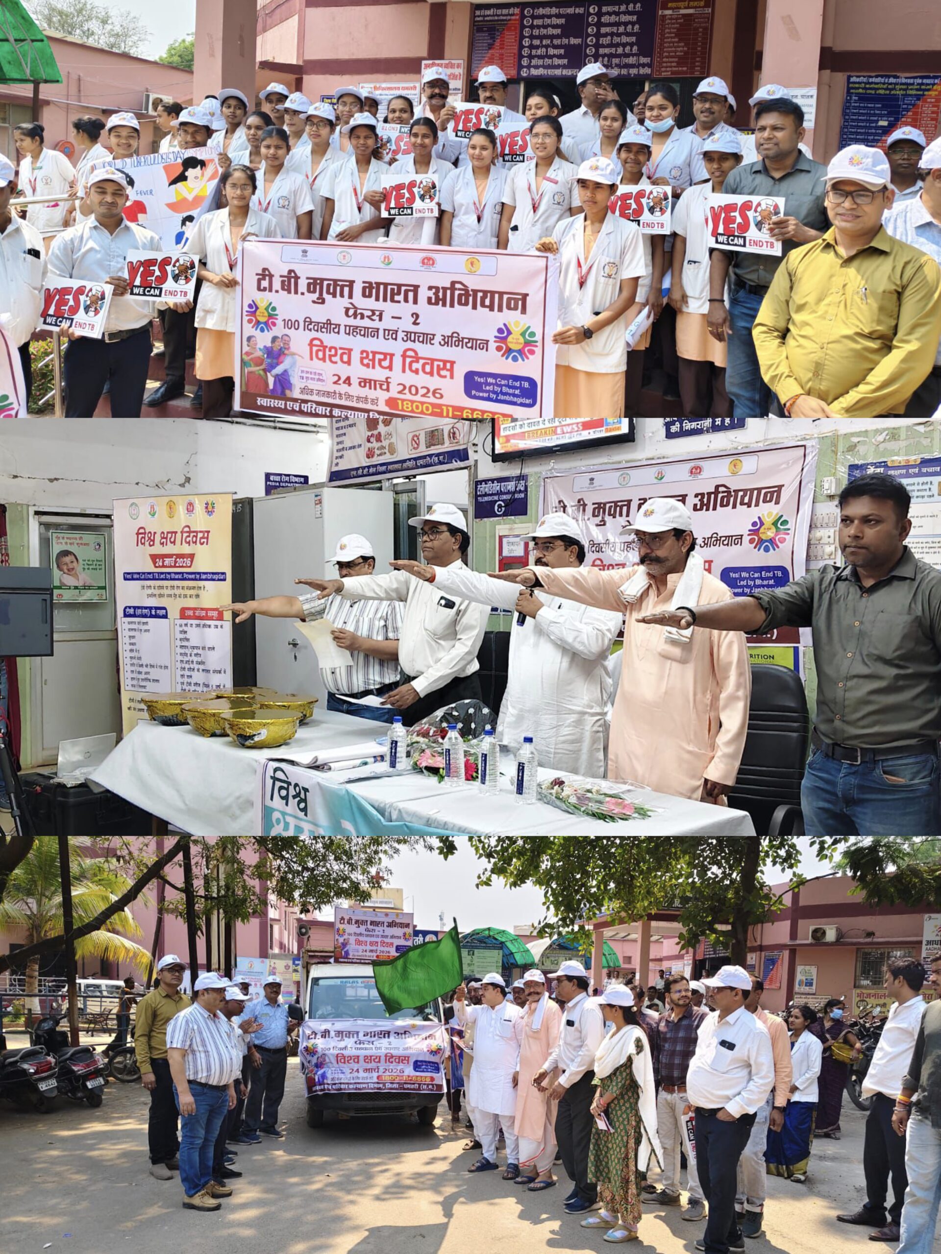 धमतरी/ विश्व क्षय दिवस के अवसर पर जिला अस्पताल (ओपीडी भवन) धमतरी में “टीबी मुक्त भारत अभियान फेस-2” के तहत जागरूकता कार्यक्रम का आयोजन किया गया। कार्यक्रम में मुख्य अतिथि के रूप में महापौर श्री रामू रोहरा उपस्थित रहे। इस अवसर पर स्वास्थ्य विभाग के अधिकारी, कर्मचारी एवं आम नागरिकों की सक्रिय सहभागिता रही।