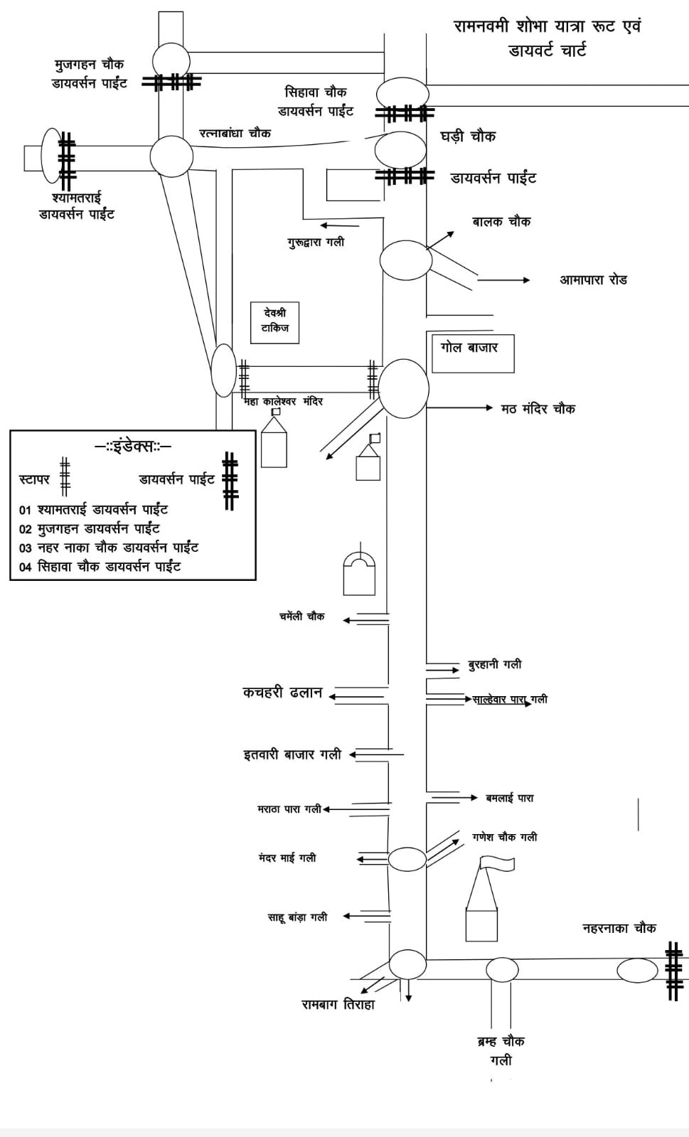 यातायात व्यवस्था को बनाए रखने के लिए विभिन्न दिशाओं से आने-जाने वाले वाहनों हेतु वैकल्पिक मार्ग निर्धारित किए गए हैं। जगदलपुर से रायपुर जाने वाले वाहन श्यामतराई बायपास से होकर गुजरेंगे, वहीं दुर्ग की ओर से आने वाले वाहन बायपास मार्ग से खपरी होते हुए अर्जुनी मोड़ और सिहावा चौक के रास्ते अपने गंतव्य तक पहुंच सकेंगे। इसी प्रकार रायपुर से जगदलपुर जाने वाले वाहनों को संबलपुर एवं श्यामतराई बायपास मार्ग का उपयोग करना होगा। नगरी-सिहावा और बोरई की ओर जाने वाले वाहनों के लिए भी नहर नाका, शांति कॉलोनी, सिहावा चौक और अर्जुनी मोड़ होते हुए वैकल्पिक मार्ग निर्धारित किए गए हैं।