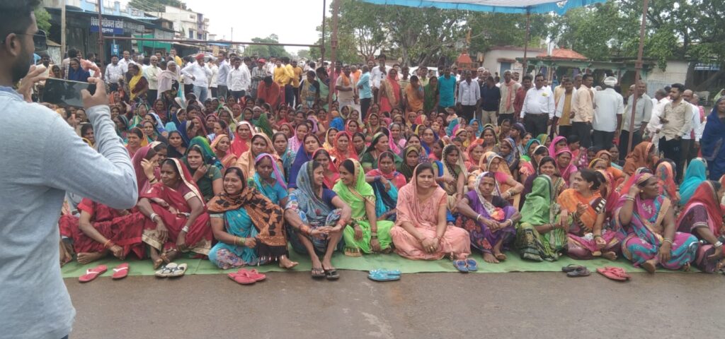 सड़क चौड़ीकरण में देरी, पानी भरने से आक्रोशित ग्रामीणों ने गुजरा में किया चक्का जाम