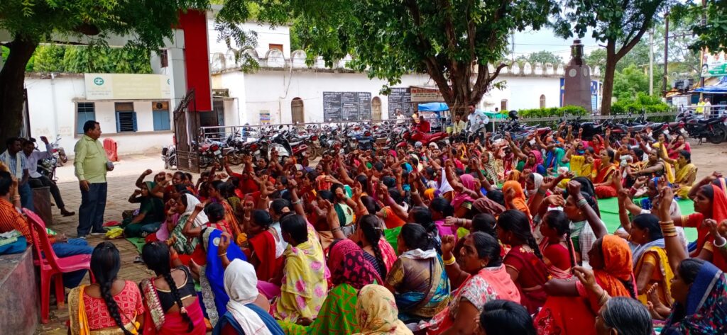 मध्यान भोजन मजदूर यूनियन ने किया प्रदर्शन