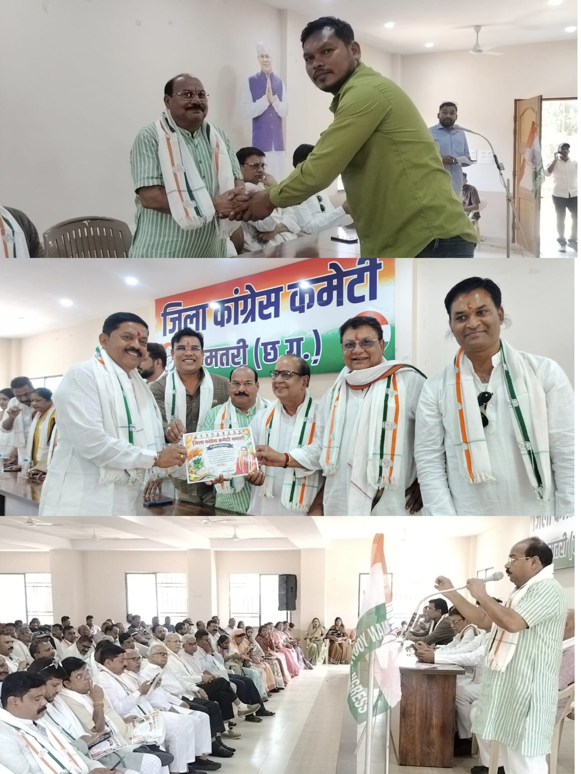 धमतरी। जिला कांग्रेस कमेटी द्वारा 10 अप्रैल 2026 को राजीव भवन धमतरी में संगठन सृजन अभियान के अंतर्गत बूथ कमेटी गठन, नवनियुक्त जिला पदाधिकारियों एवं ब्लॉक कांग्रेस कमेटी अध्यक्षों के पदभार ग्रहण तथा सम्मान समारोह का आयोजन किया गया। कार्यक्रम में जिला के वरिष्ठ नेताओं ने उपस्थित पदाधिकारियों और अध्यक्षों को बधाई एवं शुभकामनाएं देते हुए सभी को मिलजुलकर कांग्रेस संगठन के लिए ईमानदारी और समर्पण के साथ कार्य करने के लिए प्रेरित किया।