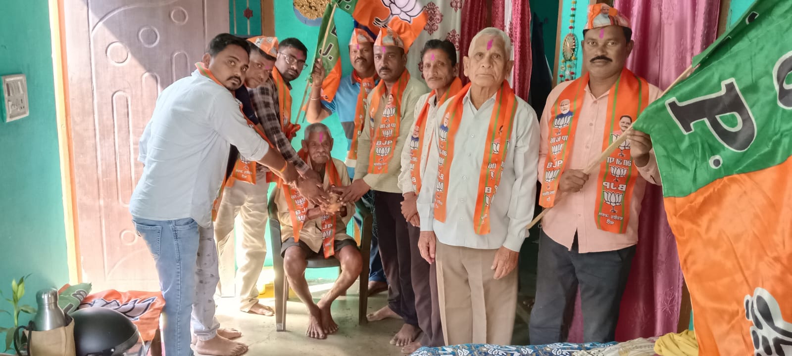 अभियान के दौरान पार्टी के अति वरिष्ठ कार्यकर्ताओं—हंसूलाल यादव, देवलाल साहू (कार सेवक), महेश साहू, श्रीमती फूलबाई, श्रीमती कुमारी बाई, श्रीमती कुंजबाई, राजकुमार नेताम, अश्विनी साहू, पुनूराम नेताम एवं भगवान सिंह नेताम—के निवास पहुंचकर उनका तिलक वंदन किया गया। कार्यकर्ताओं को पार्टी का गमछा पहनाकर श्रीफल भेंट किया गया तथा उनके चरण स्पर्श कर राष्ट्र और संगठन की उन्नति के लिए आशीर्वाद लिया गया। साथ ही उनके दीर्घायु जीवन की कामना भी की गई।