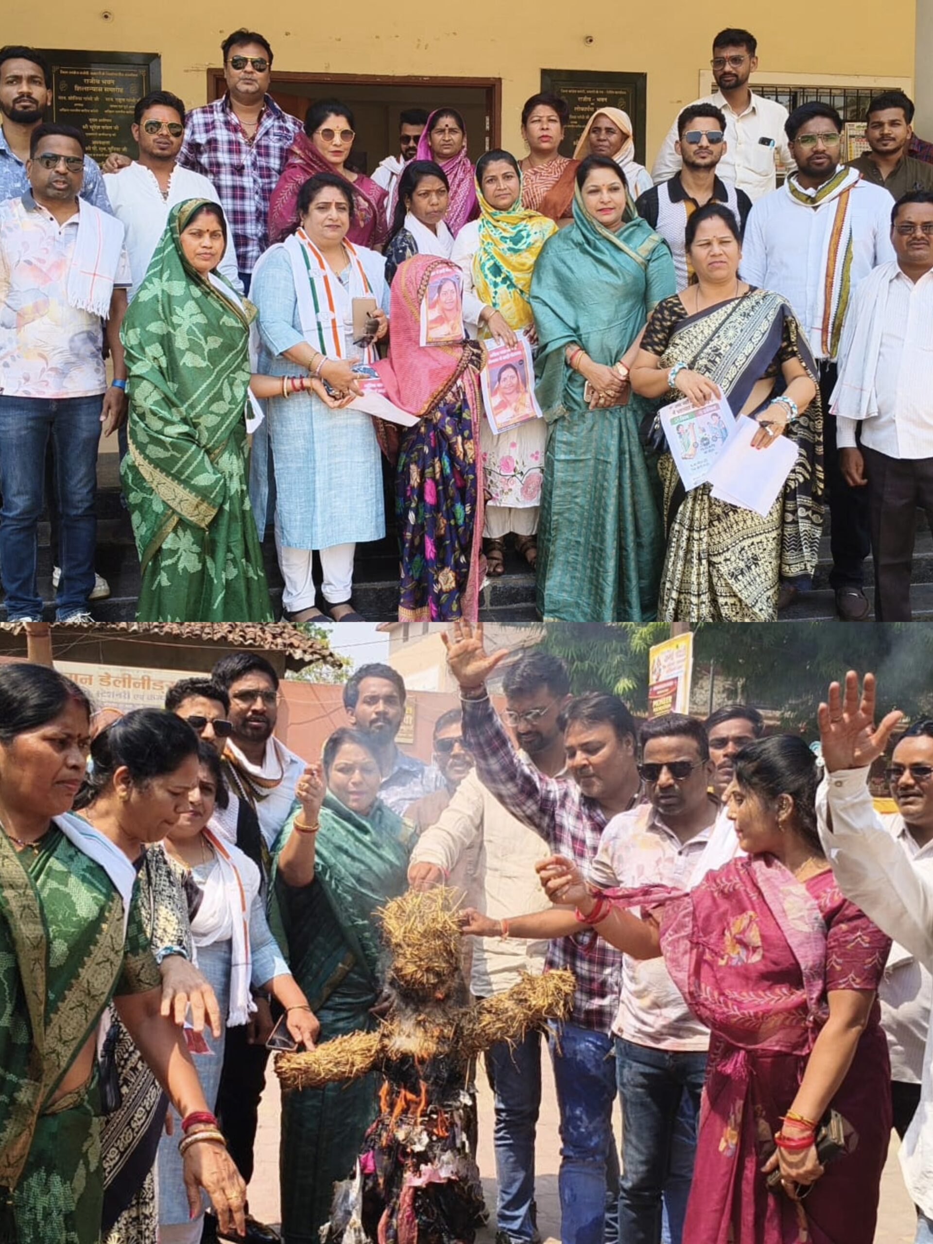 साड़ी वितरण में अनियमितता को लेकर महिला कांग्रेस का जोरदार प्रदर्शन, विभागीय मंत्री व सरकार का पुतला किया पुतला दहन