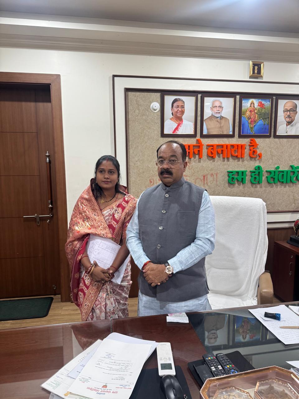 उपमुख्यमंत्री अरुण साव से नगर निगम सभापति कौशल्या देवांगन की मुलाकात, धमतरी के विकास कार्यों पर हुई चर्चा