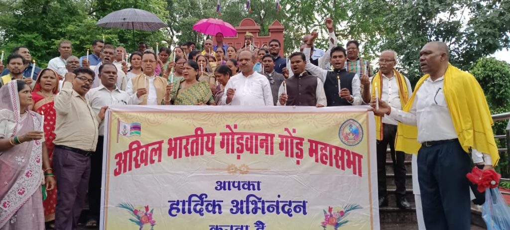 धमतरी – अदम्य शौर्य और साहस की प्रतिमूर्ति अन्याय, अत्याचार के खिलाफ मुगलों से लोहा लेने वाली वीरांगना महारानी दुर्गावती जी के मूर्ति के समक्ष अखिल भारतीय गोंडवाना गोंड महासभा द्वारा मणिपुर में राक्षस प्रवृत्ति के लोगो द्वारा बर्बरता पूर्वक महिलाओं के ऊपर किए गए सामूहिक दैहिक शोषण, हत्या,आदिवासियों के खिलाफ हो रहे अमानवीय कृत्य के घोर निंदा करते हुए पीड़ित परिवारों को न्याय दिलाने हेतु कैंडल मार्च कर विरोध प्रदर्शन किया गया। मणिपुर सरकार को तत्काल बर्खास्त किए जाने, मणिपुर सरकार मुर्दाबाद, आदिवासियों पर अन्याय बंद करो, दोषियों को फांसी दो के नारे के साथ भारी आक्रोश प्रदर्शित किया गया।