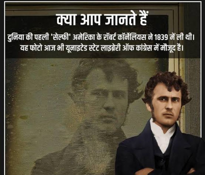 सेल्फी का क्रेज आजकल लोगों के सिर चढ़कर बोल रहा है. ऐसा शायद ही कोई हो जो अपने स्मार्टफोन से कभी सेल्फी ना ले. सेल्फी के क्रेज का इस तरह से भी अंदाजा लगाया जा सकता है कि आज ज्यादातर फोन में स्पेशली सेल्फी कैमरा डिजाइन किया जा रहा है और ‘सेल्फी फोन’ की मार्केट में खूब पूछ है, लेकिन क्या आपको पता है आज से 184 साल पहले यानी वर्ष 1839 में अमेरिका के रॉबर्ट कॉर्नेलियस ने दुनिया की पहली ‘सेल्फी’ क्लिक की थी. हालांकि उस समय, सेल्फी क्या होती है, यह कोई जानता भी नहीं था।