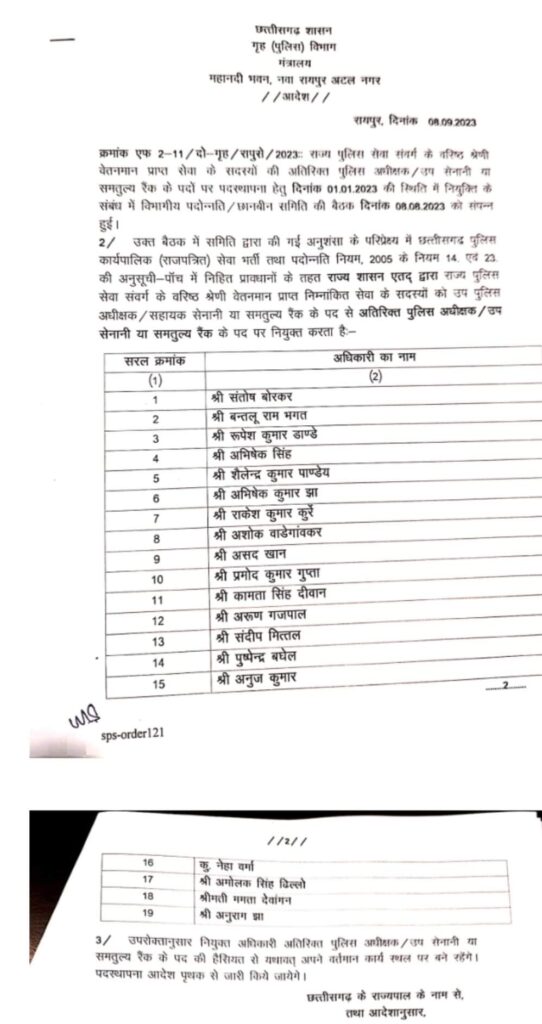 छत्तीसगढ़ पुलिस के 19 अधिकारियों का प्रमोशन, देखें लिस्ट