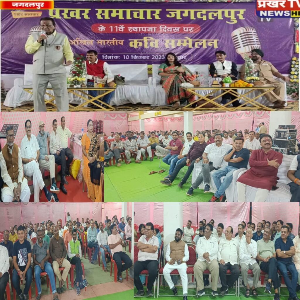 कवि सम्मेलन के प्रारंभ में मां सरस्वती के समक्ष दीप प्रज्वलित कर कार्यक्रम का शुभारंभ किया गया। उपस्थितजनों को संबोधित करते हुए प्रधान संपादक दीपक लखोटिया ने अपने स्वागत उद्बोधन में प्रखर समाचार परिवार को मिले जनता के सहयोग के प्रति आभार व्यक्त किया। उन्होंने कहा कि आगामी वर्षों से जगदलपुर संस्करण के वर्षगांठ के अवसर पर प्रतिवर्ष इसी तरह अखिल भारतीय कवि सम्मेलन कराया जाएगा। मुख्य अतिथि रेखचंद जैन और श्याम सोमानी ने अपने उद्बोधन में कहा कि प्रखर समाचार लगातार प्रगति कर रहा है और बस्तर अंचल में भी इसकी उपस्थिति में सब का ध्यान आकृष्ट किया है। जन सरोकारों से जुड़े मुद्दों और शासन की योजनाओं को पहुंचने में कारगर साबित हुआ है। मंच पर माहेश्वरी समाज के वरिष्ठ एवं समाजसेवी श्याम सोमानी, जानकी वल्लभाचार्य गिरी महाराज धमतरी, गोपाल शर्मा धमतरी आदि आसीन रहे। कार्यक्रम के प्रारंभ में अतिथियों एवं आमंत्रित कवियों का स्वागत प्रधान संपादक दीपक लखोटिया, विशेष लखोटिया, जगदलपुर ब्यूरो प्रमुख ठाकुर दिलीप सिंह, एसपी तोमर, बीजापुर ब्यूरो प्रमुख पुष्पा रोकड़े, अनिल राव मिंटो राय, धमतरी के संपादक मेंघराज ठाकुर, मोहम्मद शाह, प्रबंधक कमलेश सोनी, रंजीत भट्टाचार्य आदि ने किया। इस आयोजन में जगदलपुर के माहेश्वरी समाज द्वारा सभी कवियों को स्मृति चिन्ह देकर विशेष रूप से सम्मानित किया गया। कवि सम्मेलन में पद्मश्री डॉ सुरेंद्र दुबे रायपुर, गीत गजल शिखा दीप्ति गाजियाबाद, वीर रस कवि प्रख्यात मिश्रा लखनऊ, भिलाई के किशोर तिवारी और धमतरी के रंजीत छाबड़ा ने अपनी कविताओं रचनाओं गीत गजल देशभक्ति गीत एवं व्यंग से उपस्थितजनों को सराबोर कर दिया। मंच संचालन डॉ. सुरेंद्र दुबे ने किया। जगदलपुर के पत्रकार संघ ने भी विशेष रूप से डॉ. सुरेंद्र दुबे को स्मृति चिन्ह एवं शाल देकर सम्मानित किया। कवि सम्मेलन में माहेश्वरी समाज जगदलपुर के अध्यक्ष चंद्रेश कुमार चांडक, उपाध्यक्ष महेश कुमार राठी, सचिव नथमल बमपालिया, वरिष्ठ पत्रकार एस करीमुद्दीन, हेमंत कश्यप, धमतरी के अमरचंद जैन, गुलशन छाबरिया, विजय साहू, तिलक लांगे समेत सैकड़ों की संख्या में जगदलपुर के श्रोता मौजूद रहे।