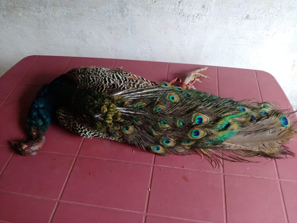 मानव वन में मृत अवस्था में पाया गया राष्ट्रीय पक्षी मोर,पशु चिकित्सा विभाग के डॉक्टरों ने किया पोस्टमार्टम