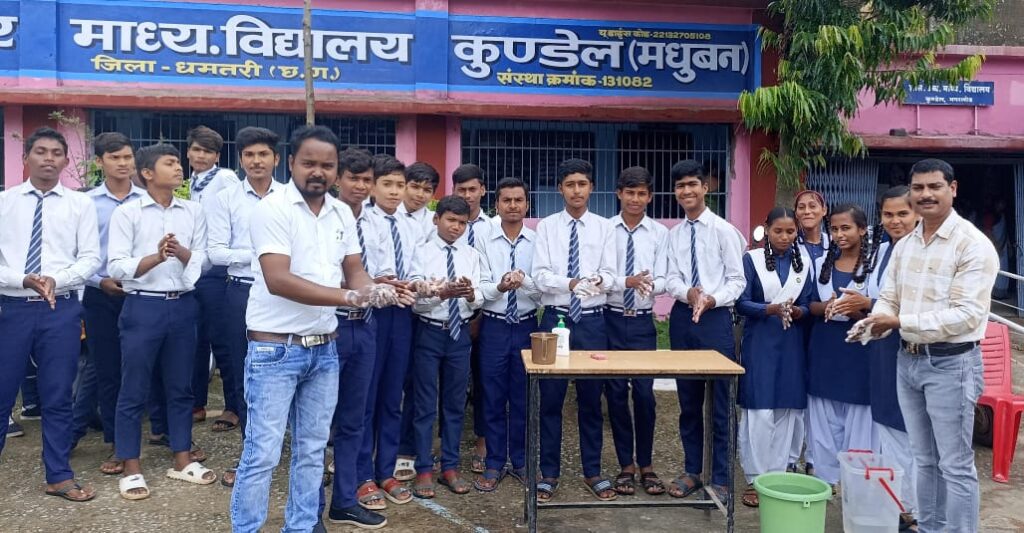 शासकीय उच्चतर माध्यमिक विद्यालय कुण्डेल (मधुबन) में स्वच्छता के तहत विद्यालय की साफ सफाई तथा छात्र-छात्राओं को हाथ धुलाए गए