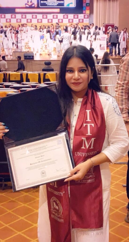 आई.टी.एम.युनिवर्सिटी की छात्रा अबनार रिज़वी को बैचलर ऑफ़ आर्किटेक्चर की मिली डिग्री