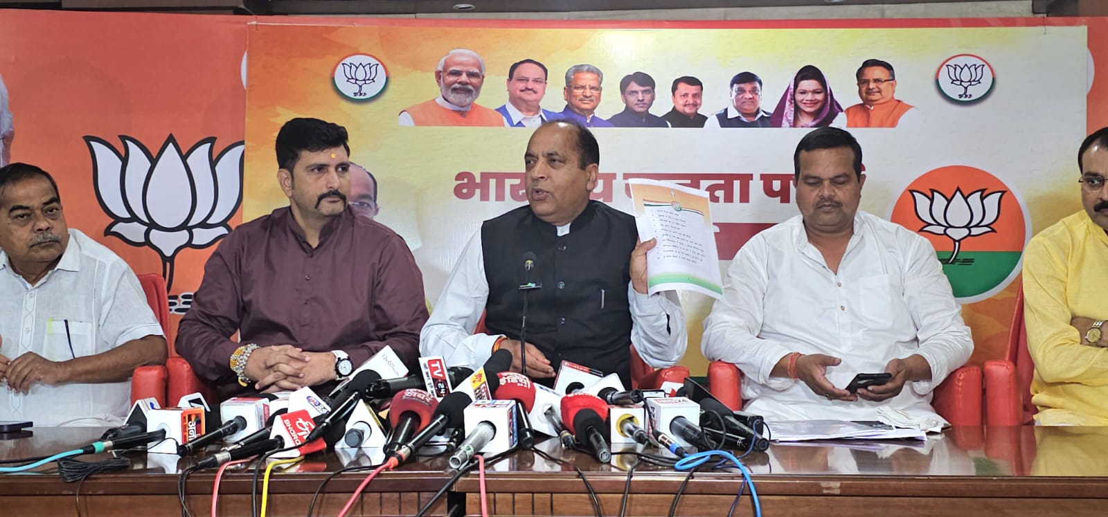 जयराम ठाकुर ने कहा कि कांग्रेस ने हिमाचल में कई झूठी गारंटी भी दी थीं, जिनमें कहा गया था कि बागवान फलों की कीमत तय करेंगे, युवाओं के लिए 680 करोड़ का स्टार्टअप फंड रखा जाएगा, हर विधानसभा क्षेत्र में चार अंग्रेजी मीडियम स्कूल खोले जाएंगे, हर गांव में मोबाइल क्लीनिक से मुफ्त इलाज होगा। लेकिन यह सारे वादे कांग्रेस भूल गई। उसकी नीयत में खोट है। कांग्रेस ने छत्तीसगढ़ की तरह हिमाचल प्रदेश में भी पुरानी पेंशन स्कीम बहाल करने का वादा किया था। यह भी पूरा नहीं हुआ है। कांग्रेस की सारी गारंटी झूठ का पुलिंदा है।