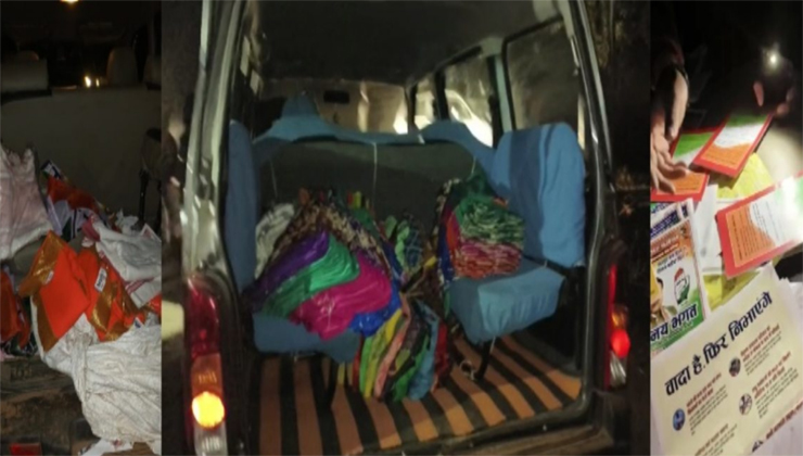 कार में मिली साड़ी, फर्जी राशनकार्ड और कांग्रेस प्रत्याशी का बैनर