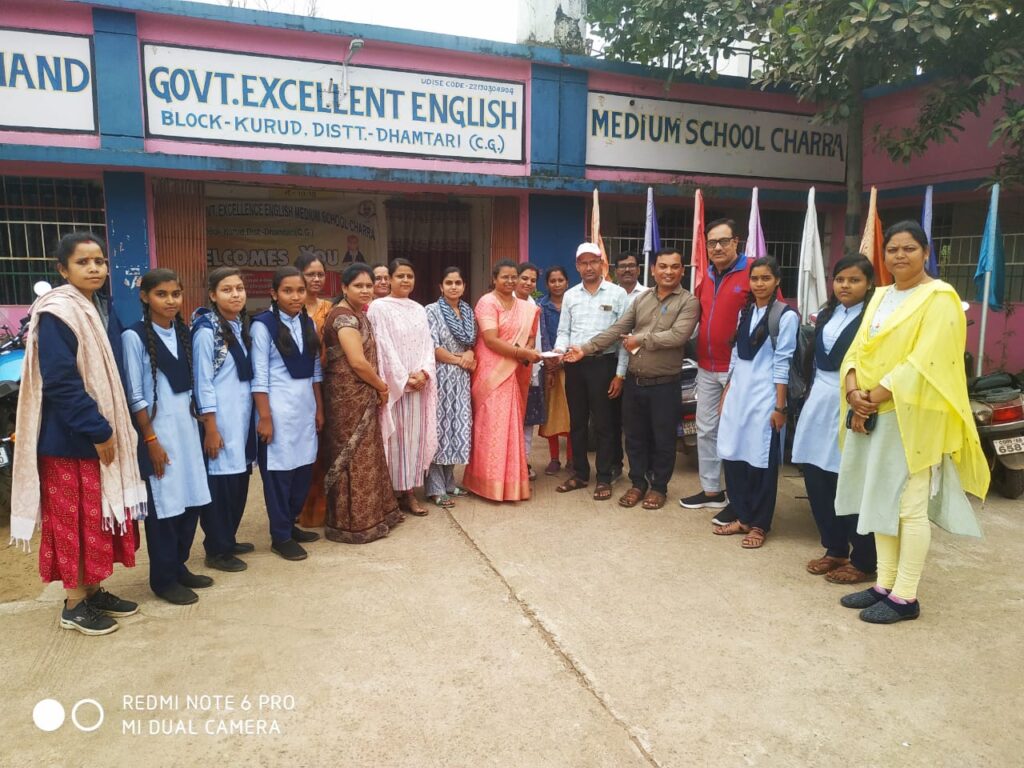 धमतरी — स्वामी आत्मानंद शा.उ.मा.वि.चर्रा के शिक्षकों एवं छात्रों ने एक कैंसर पीड़ित कक्षा पहली की छात्रा को उनके इलाज हेतु मानवता का परिचय देते हुए 25 हजार रुपये की मदद की है।